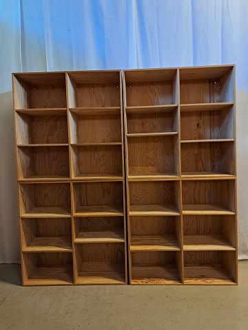 Reol i massivt fyrretræ, fra 1990erne. Den har brugsspor. Højde 200cm Bredde 111cm Dybde 30cm Emne nummer: 75340