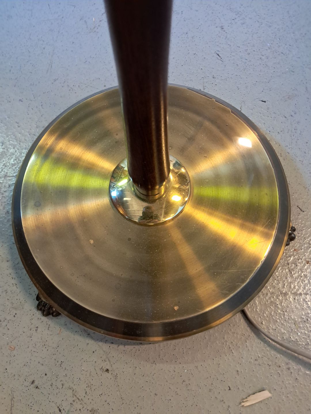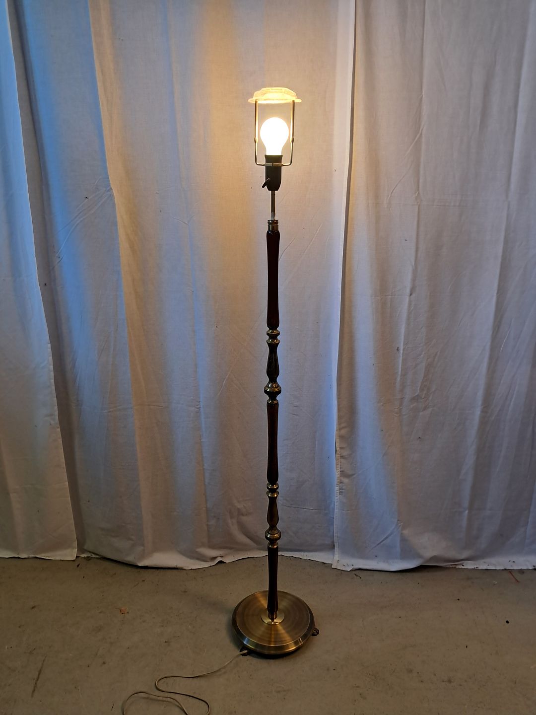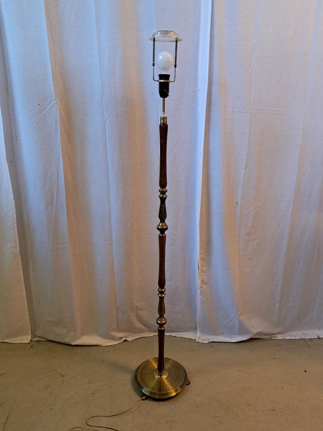 Gulvlampe i matal og palisander, fra 1960erne. Den har brugsspor. Højde 144cm Diameter på fod 25cm Emne nummer: 77198