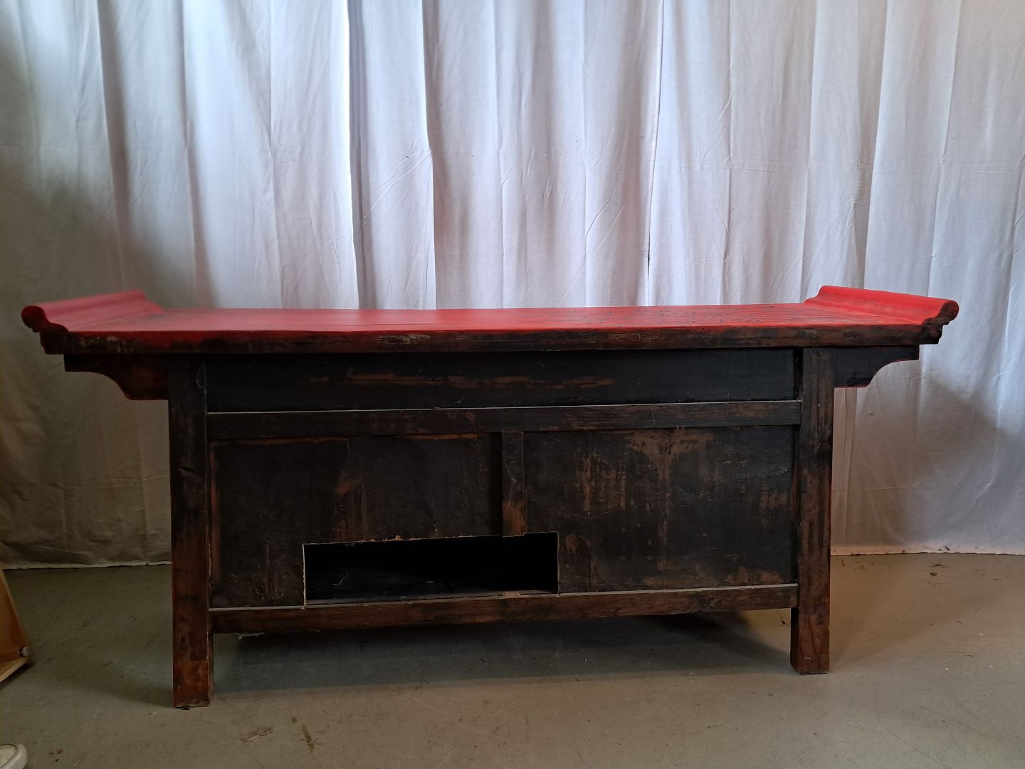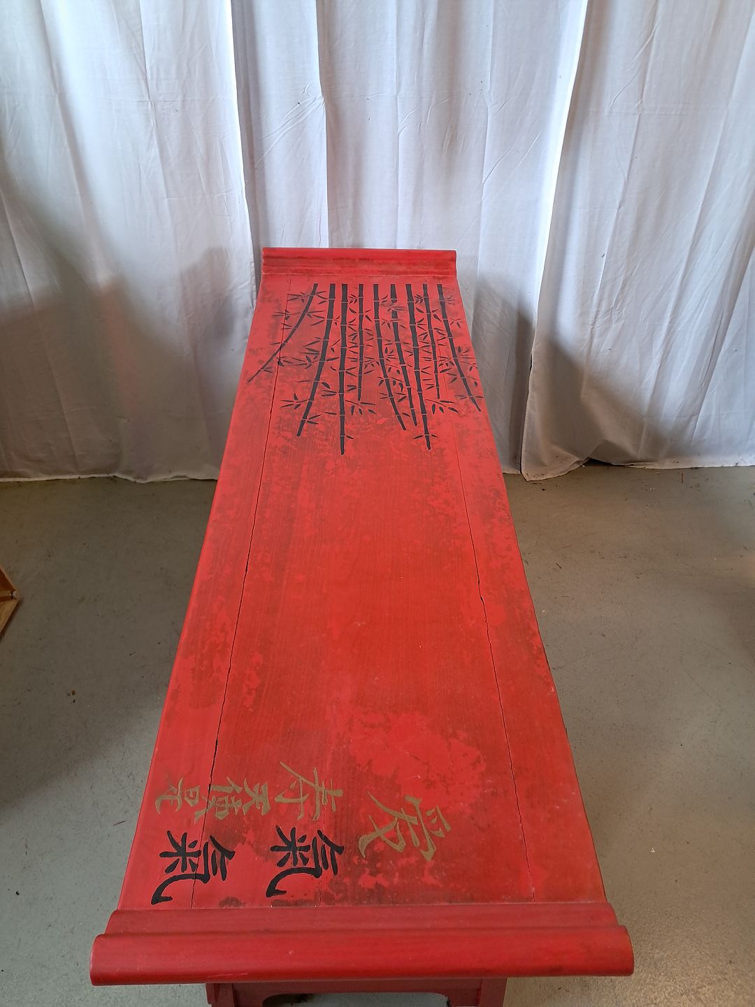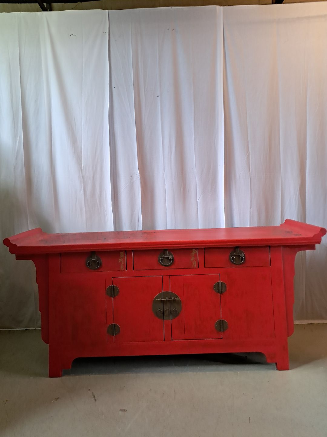 Malet asiatisk skænk, fra 1990erne. Den har brugsspor. Højde 81cm Bredde 189cm Dybde 55cm Emne nummer: 77215