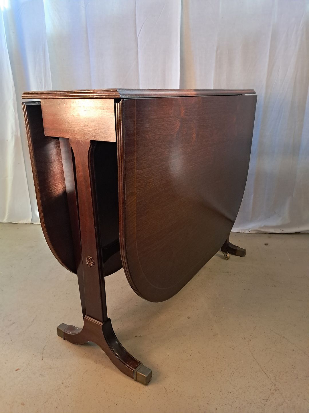 Kaptajnens bord i fineret mahogni, fra 1970erne. Det har små brugsspor. Højde 75cm Bredde 92cm Længde 29cm Længde med klapper 150cm Emne nummer: 77222