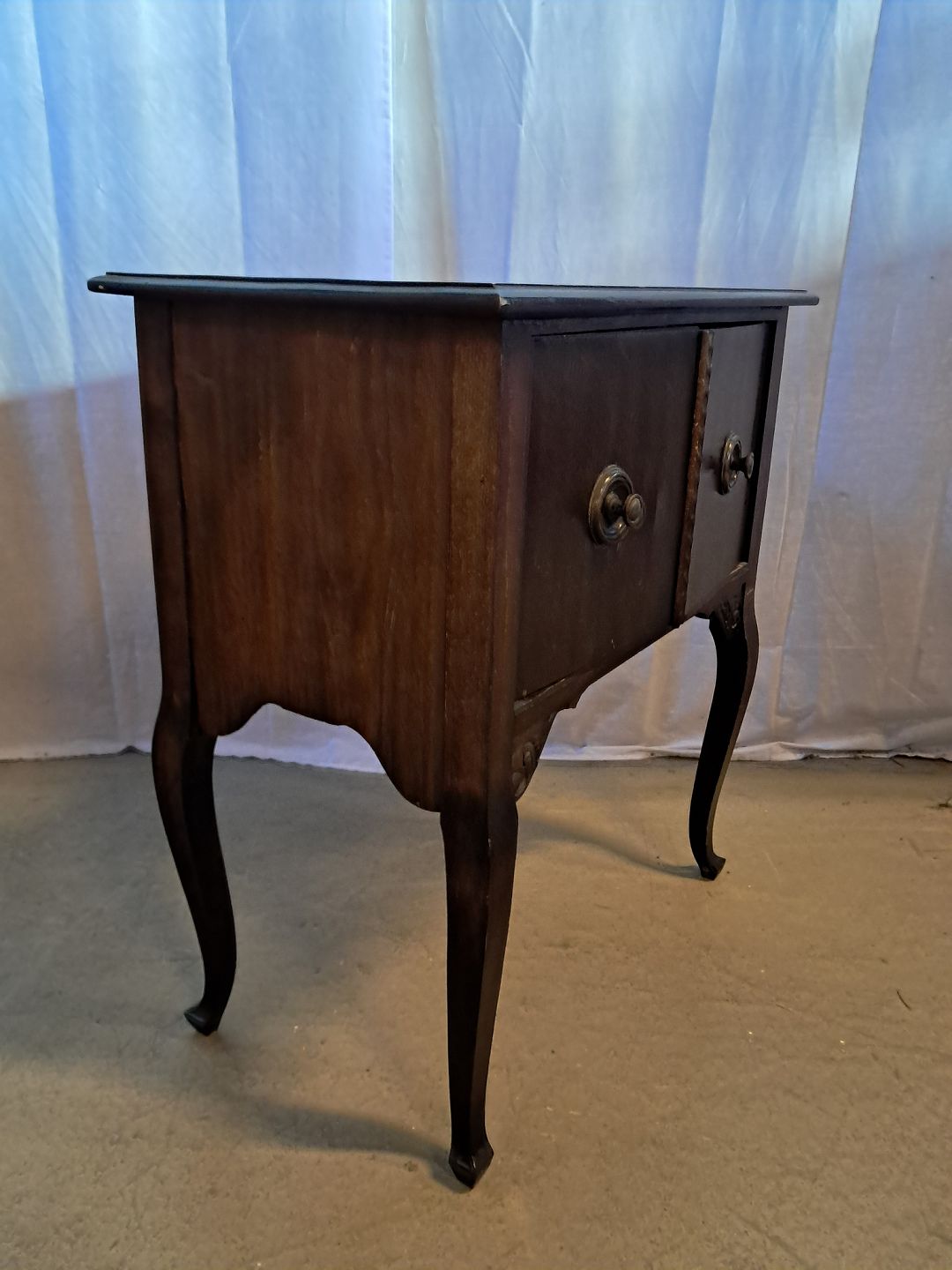 Skab i mahogni, fra 1910erne. Det har brugsspor. Højde 74cm Bredde 68cm Dybde 38cm Emne nummer: 77228