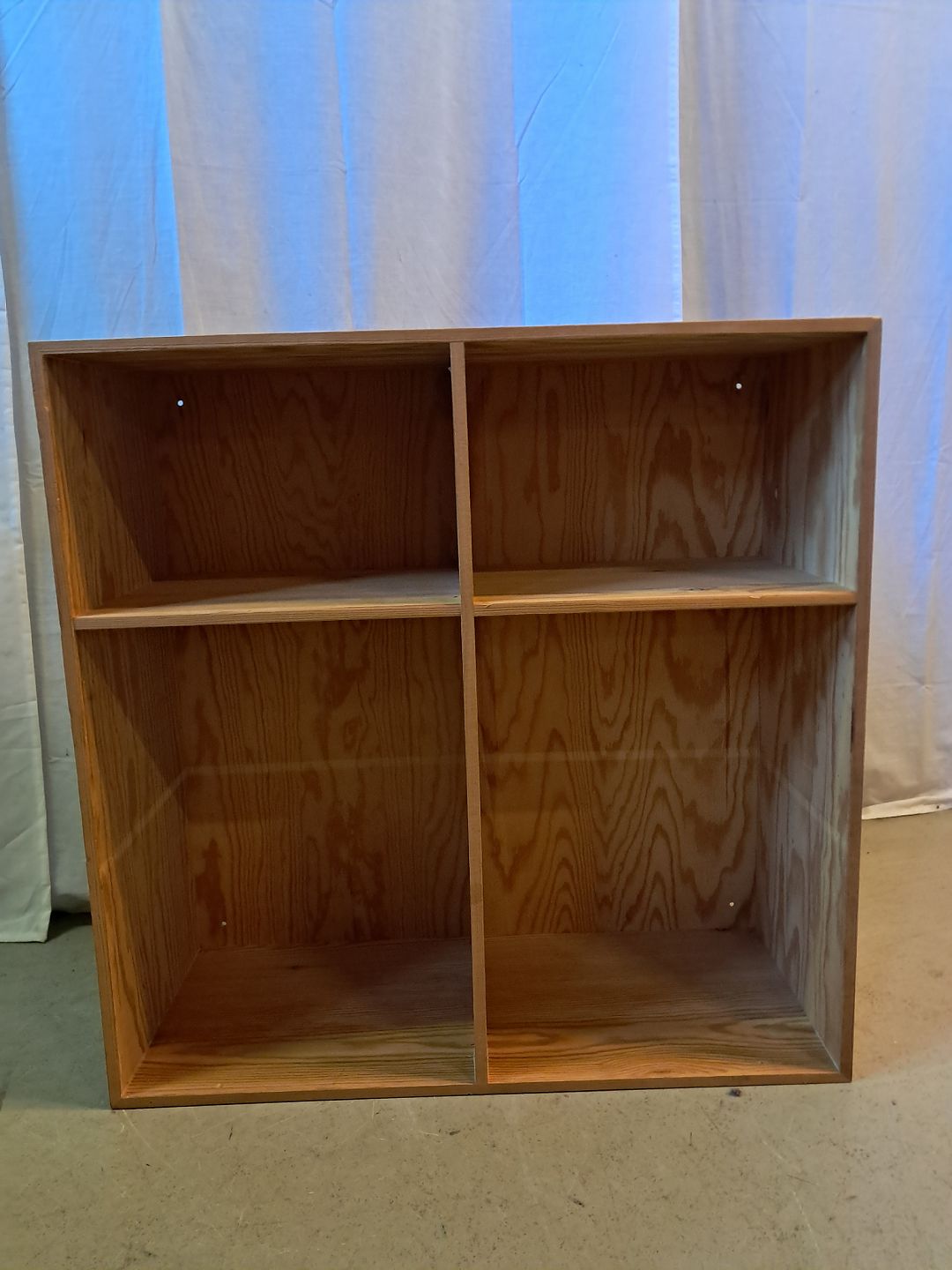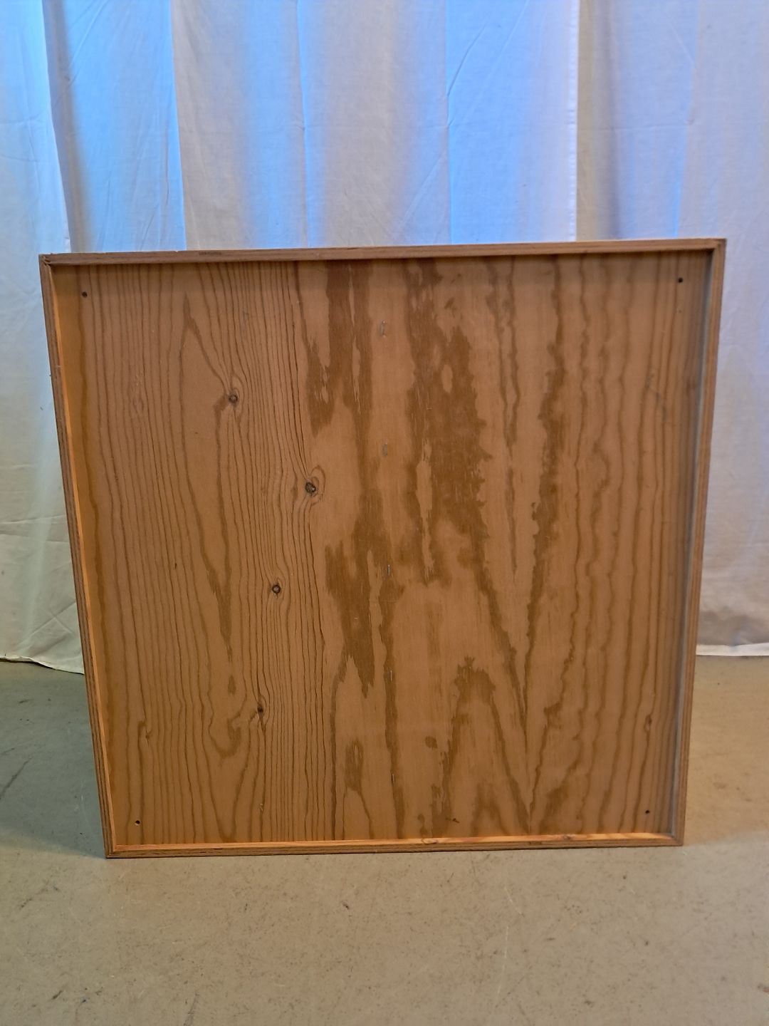 Reolkasse i krydsfiner, fra 2000erne. Den har brugsspor og der medfølger ikke ophæng. Højde 70cm Bredde 70cm Dybde 30cm Emne nummer: 77245