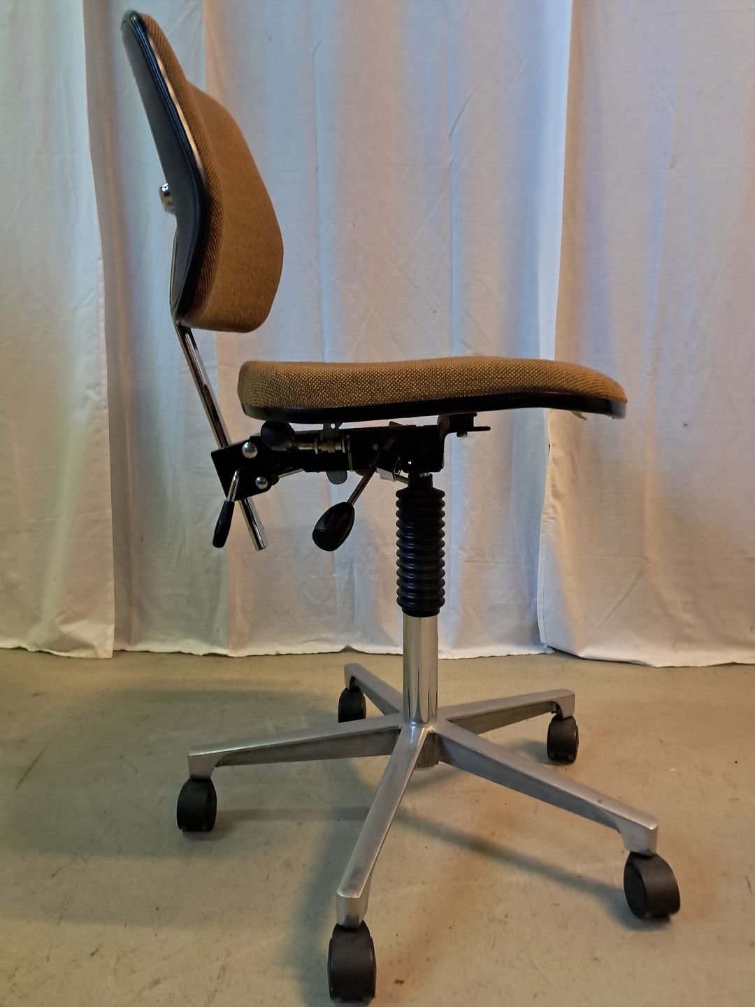 Kontorstol i metal, fra 1990erne. Den har brugsspor. Variabel højde, på foto : Ryghøjde 94cm Sædehøjde 59cm Emne nummer: 77315