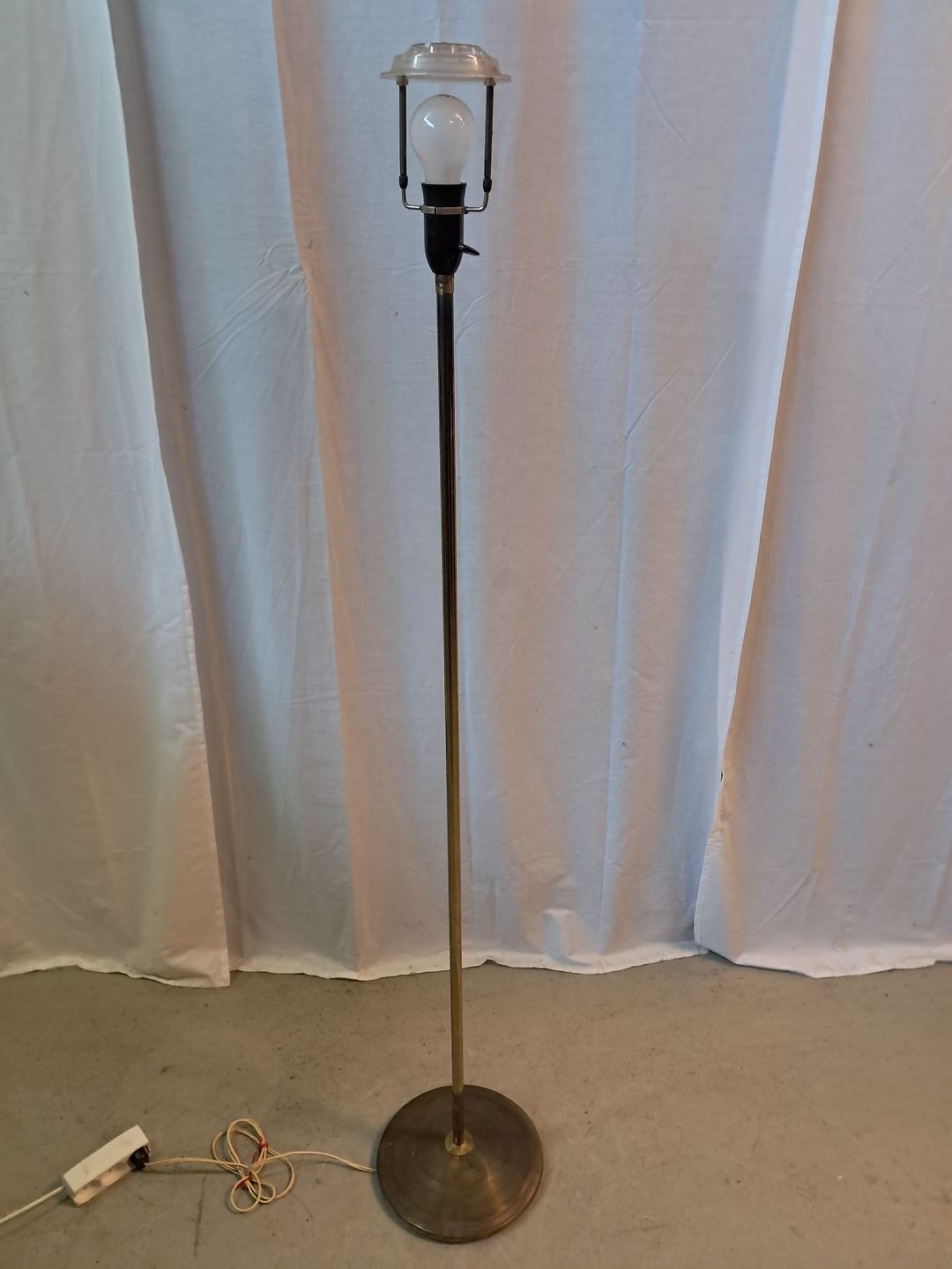 Standerlampe i metal, fra 1960erne. Den har brugsspor. Højde 127cm Diameter på fod 27cm Emne nummer: 77324