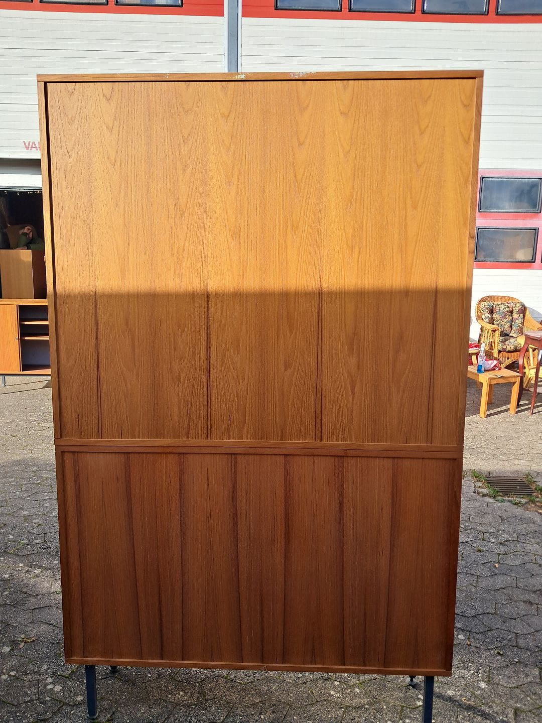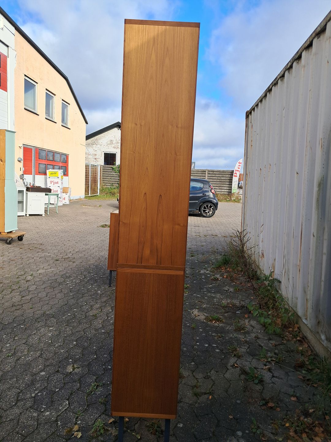 2 Delt reol i fineret teaktræ, fra 1970erne. Den har brugsspor. Højde 198cm Bredde 120cm Dybde 31cm Emne nummer: 77341