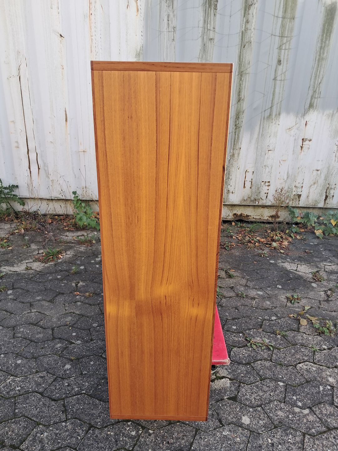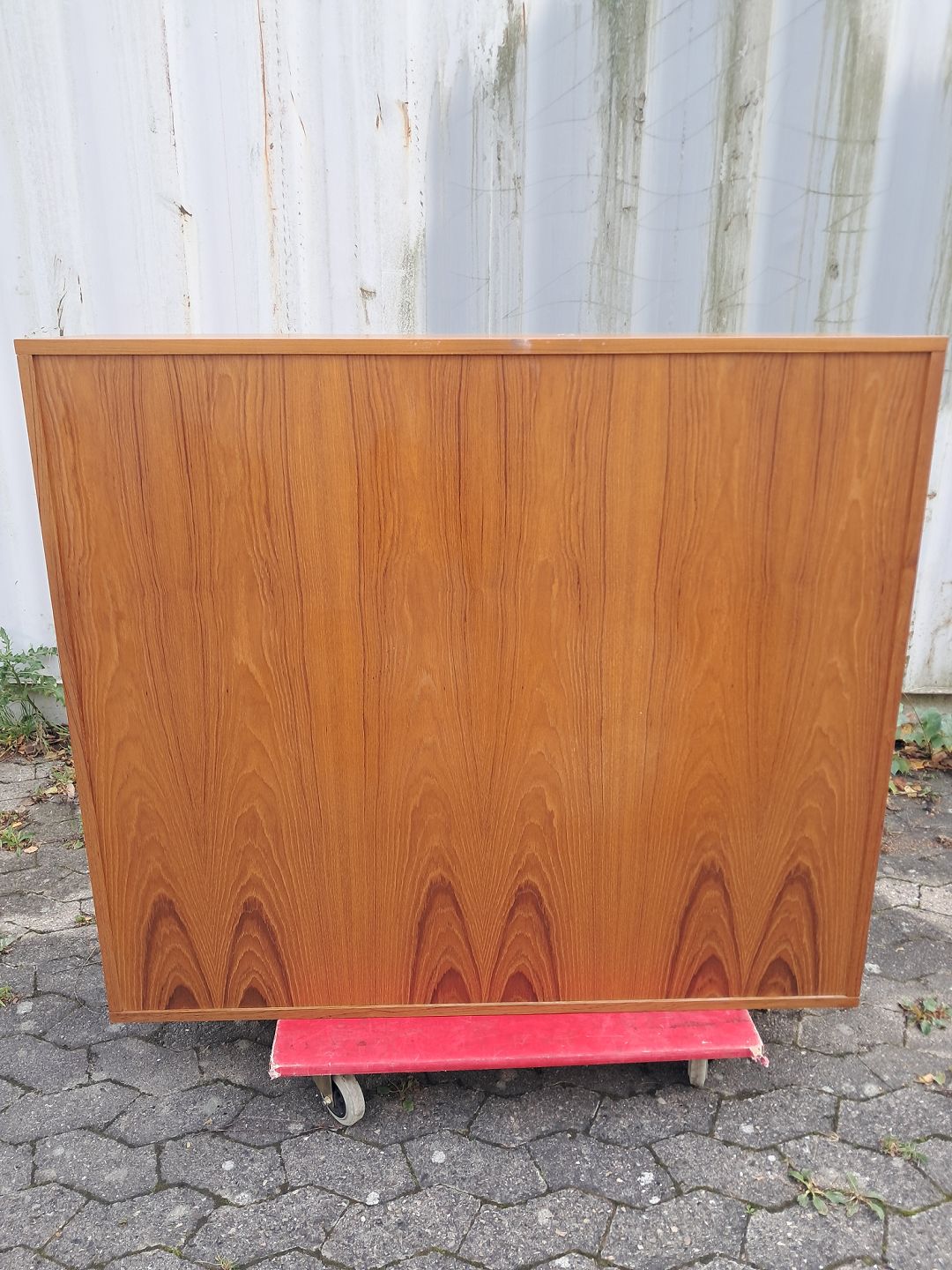 Reol i fineret teaktræ, fra 1970erne. Den har brugsspor. Højde 104cm Bredde 120cm Dybde 31cm Emne nummer: 77343