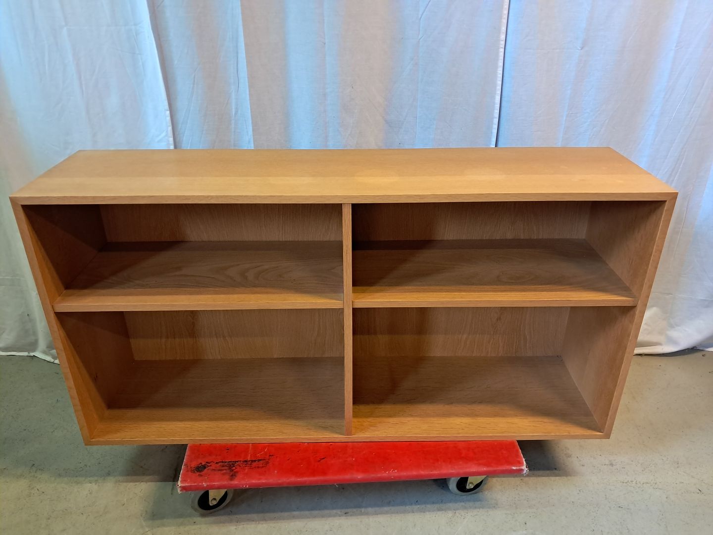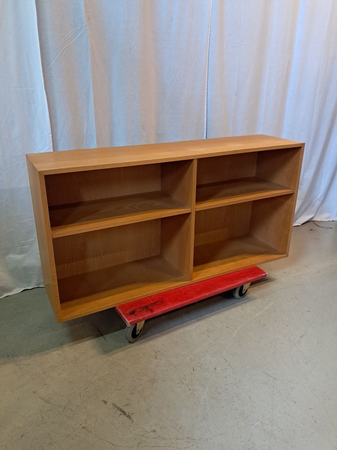 Reol i fineret egetræ, fra 1990erne. Den har brugsspor og der medfølger ikke ophæng. Højde 61cm Bredde 120cm Dybde 30cm Emne nummer: 77389