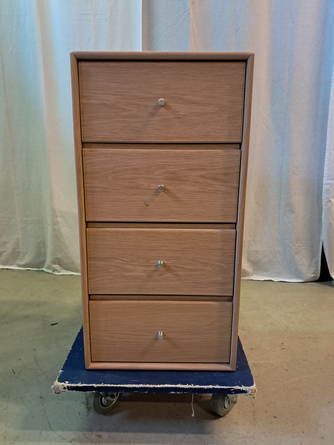 Montana kommode i fineret egetræ, fra 2010erne. Den har små brugsspor og der medfølger ikke ophæng. Højde 70cm Bredde 36cm Dybde 39cm Emne nummer: 77400