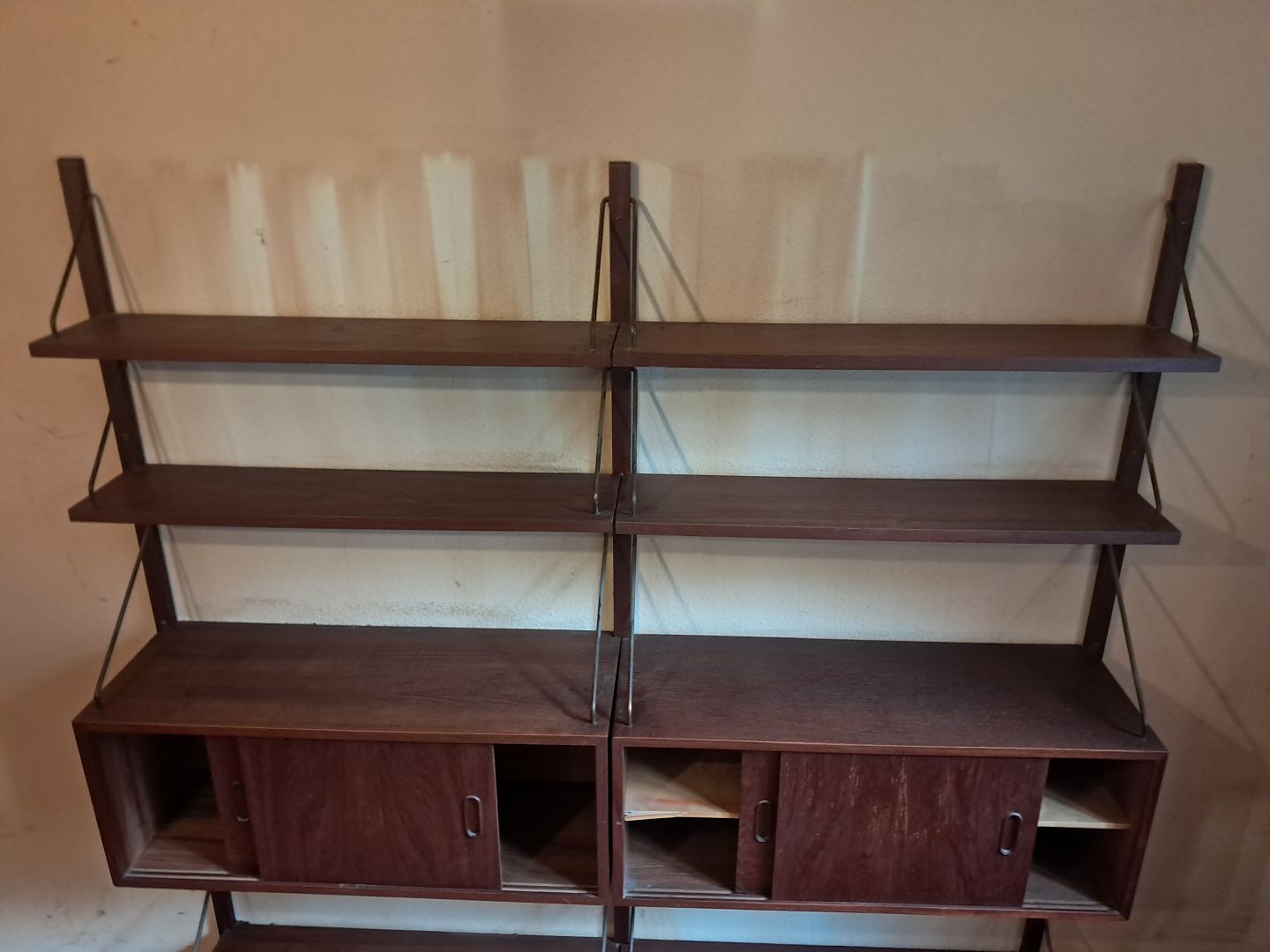 Vangesystems reol i fineret teaktræ, fra 1960erne.