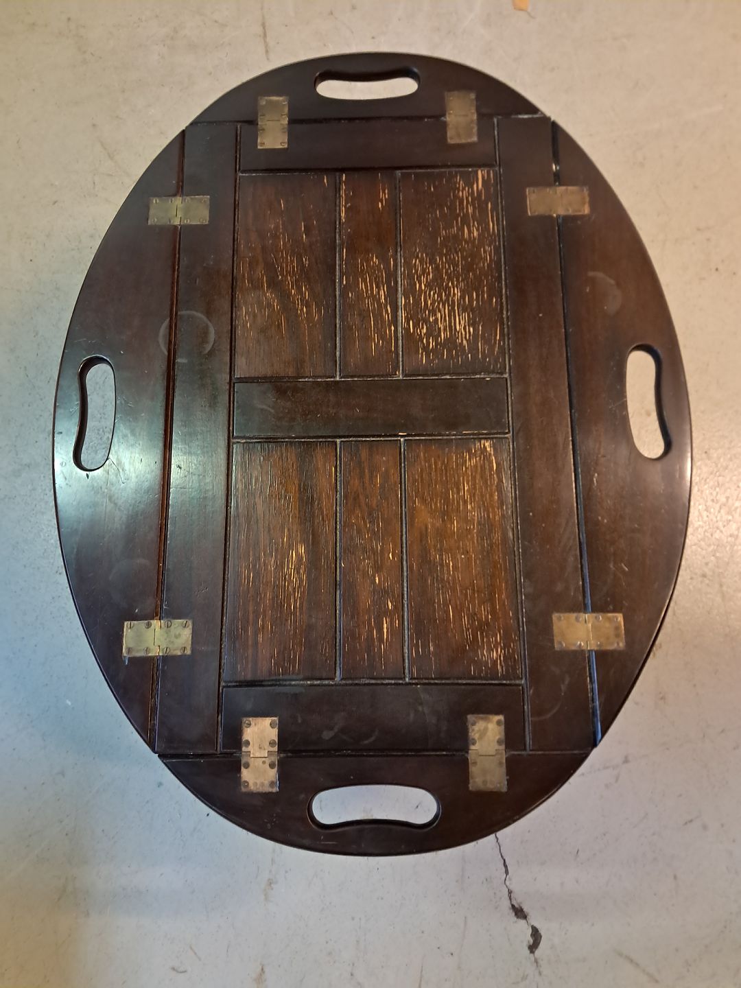 Butlers tray i fineret bøgetræ, fra 1980erne. Det har brugsspor. Højde 47cm Bredde 64cm Længde 83cm Emne nummer: 77409