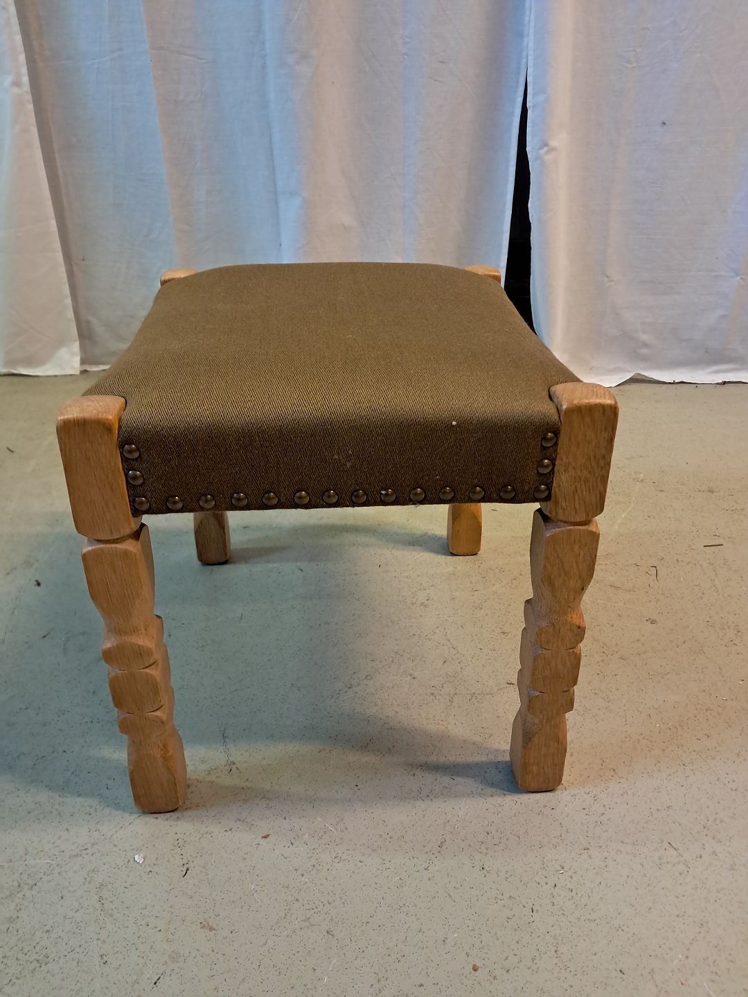 Skammel i massivt egetræ, fra 1980erne. Den har brugsspor. Højde 37cm Bredde 41cm Dybde 36cm Emne nummer: 77417