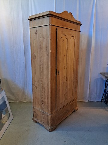 Skab i massivt fyrretræ, fra 1920erne. Det har brugsspor og mangler bagbeklædning, det lugter af tobak og skal vaskes ned. Højde 202cm Bredde 100cm Dybde 54cm Emne nummer: 77424
