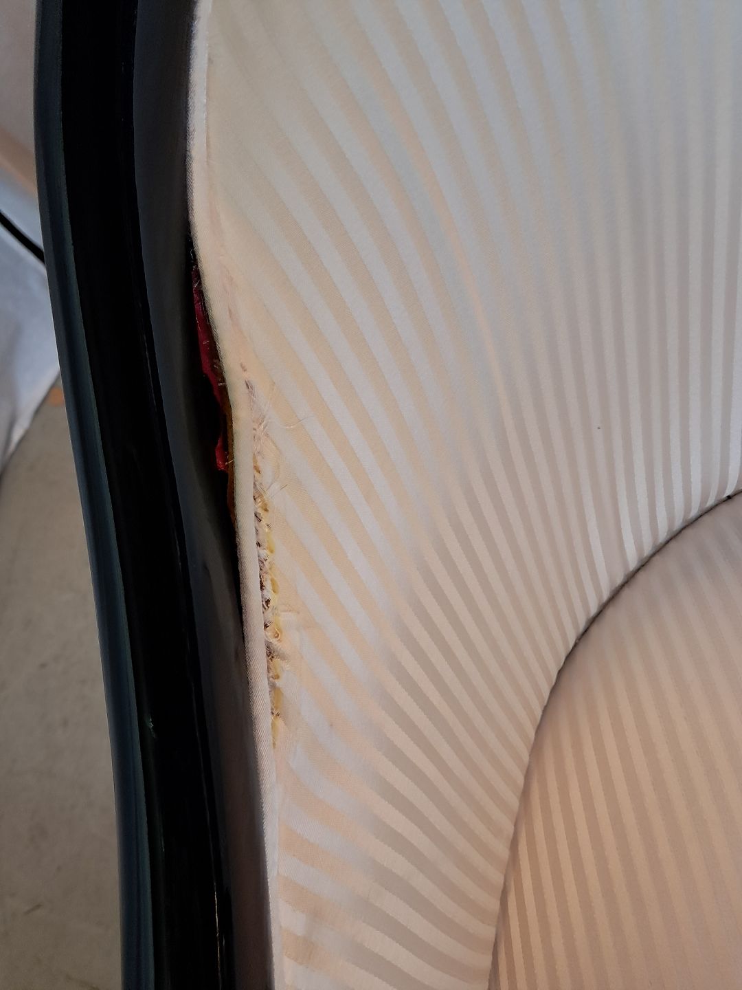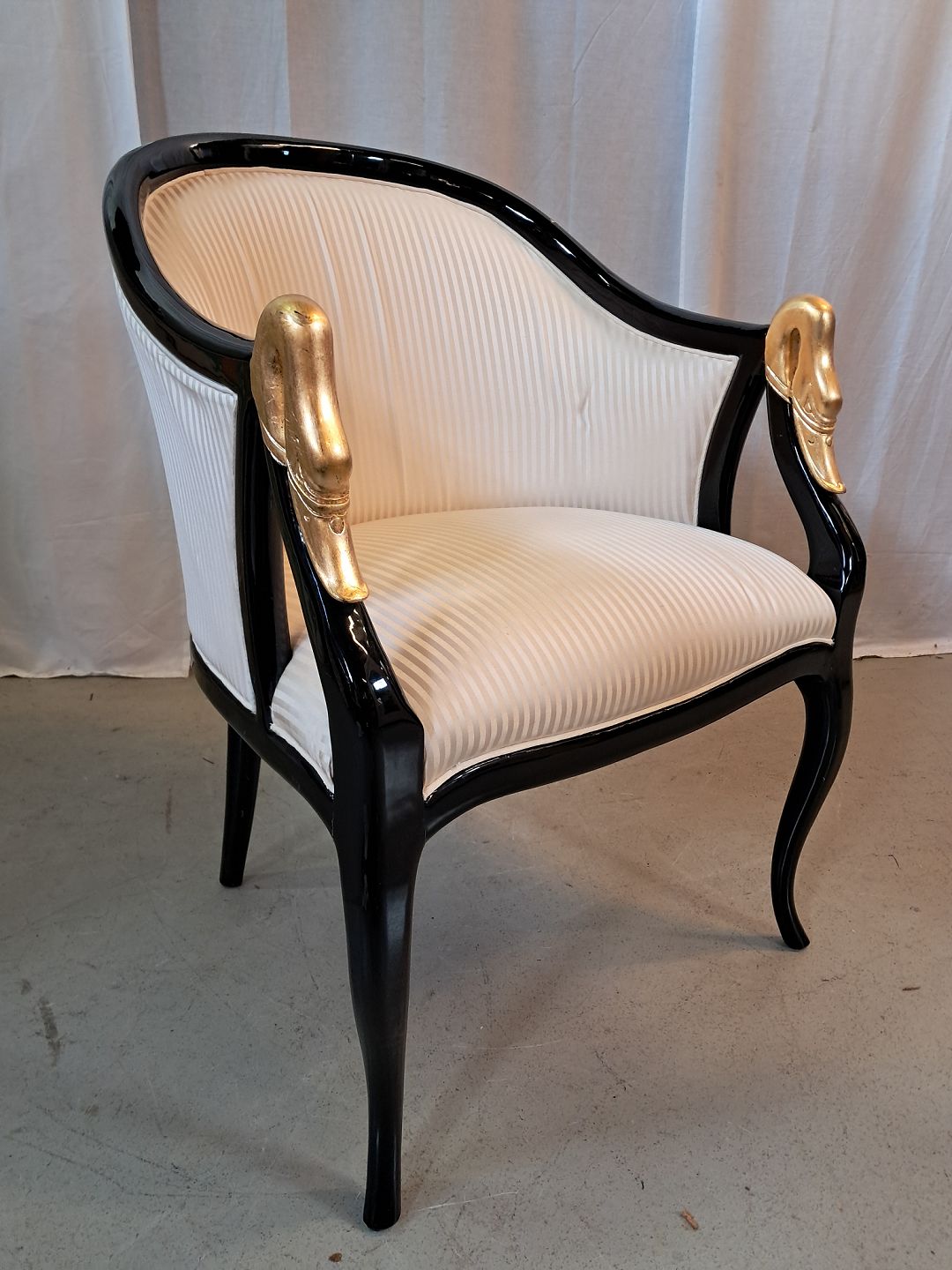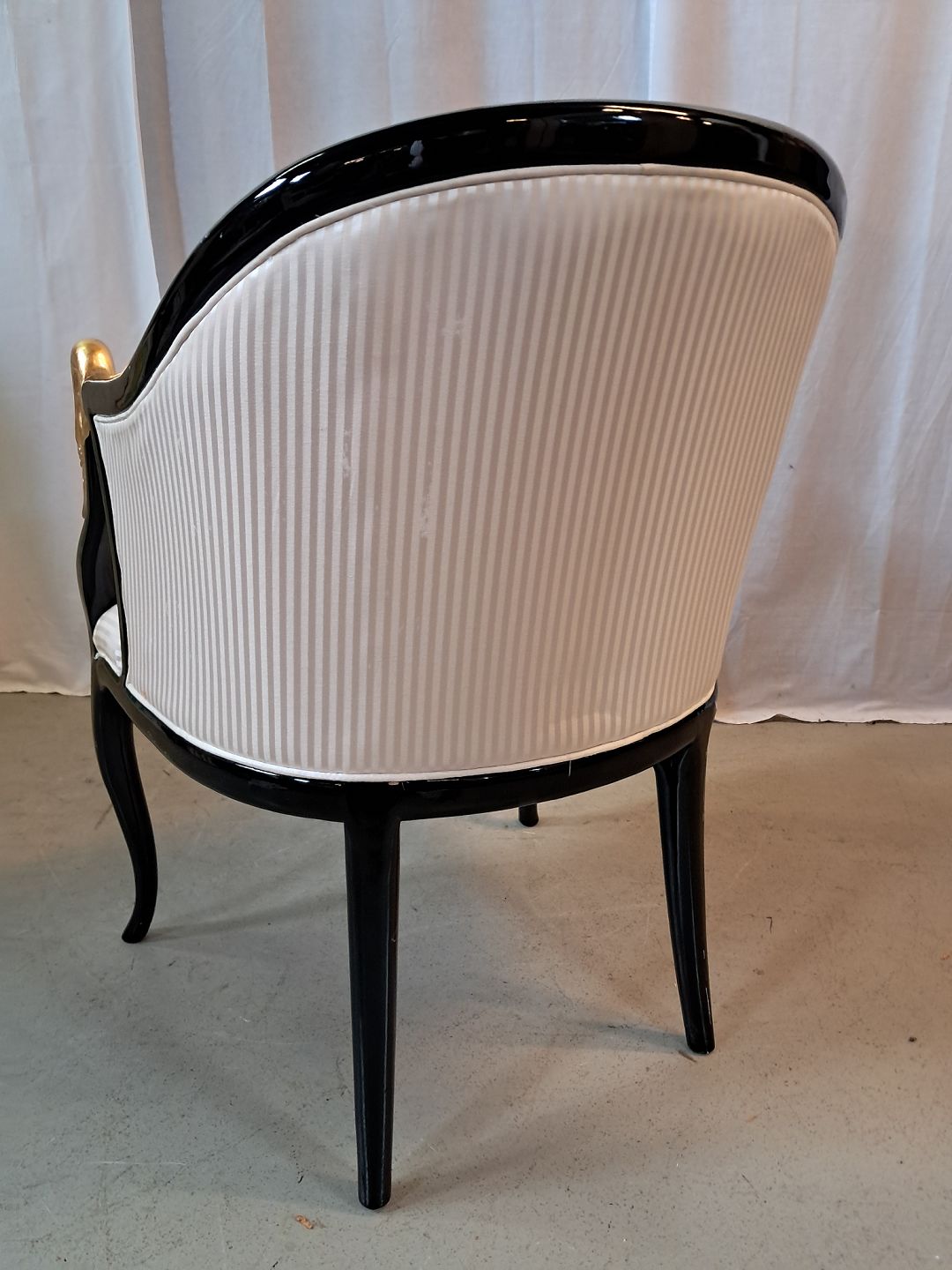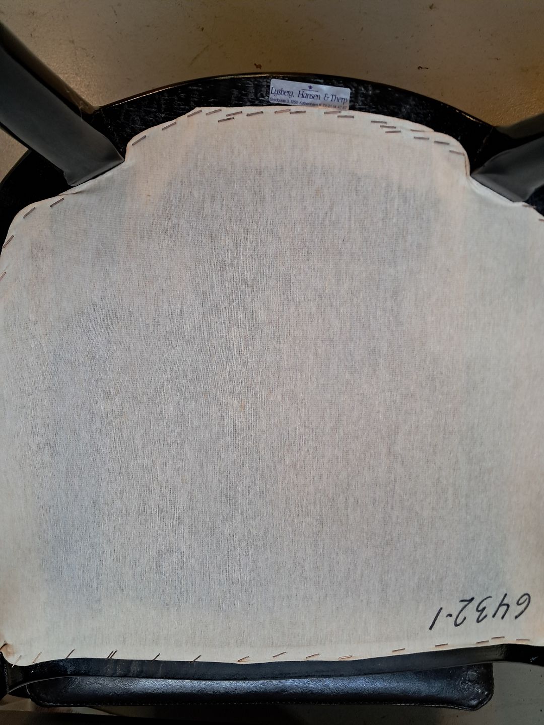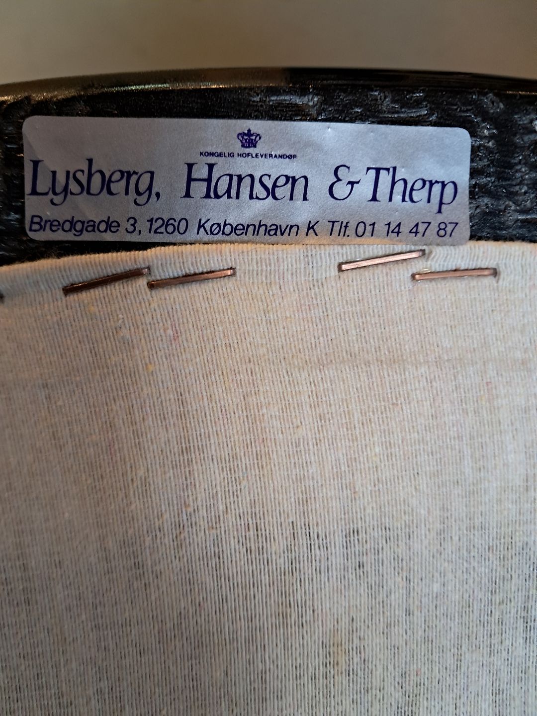 Lysberg Hansen og Terp armstol i malet træ, fra 1990erne. Den har brugsspor og defekt betræk. (se foto) Ryghøjde 83cm Sædehøjde 46cm Emne nummer: 77427
