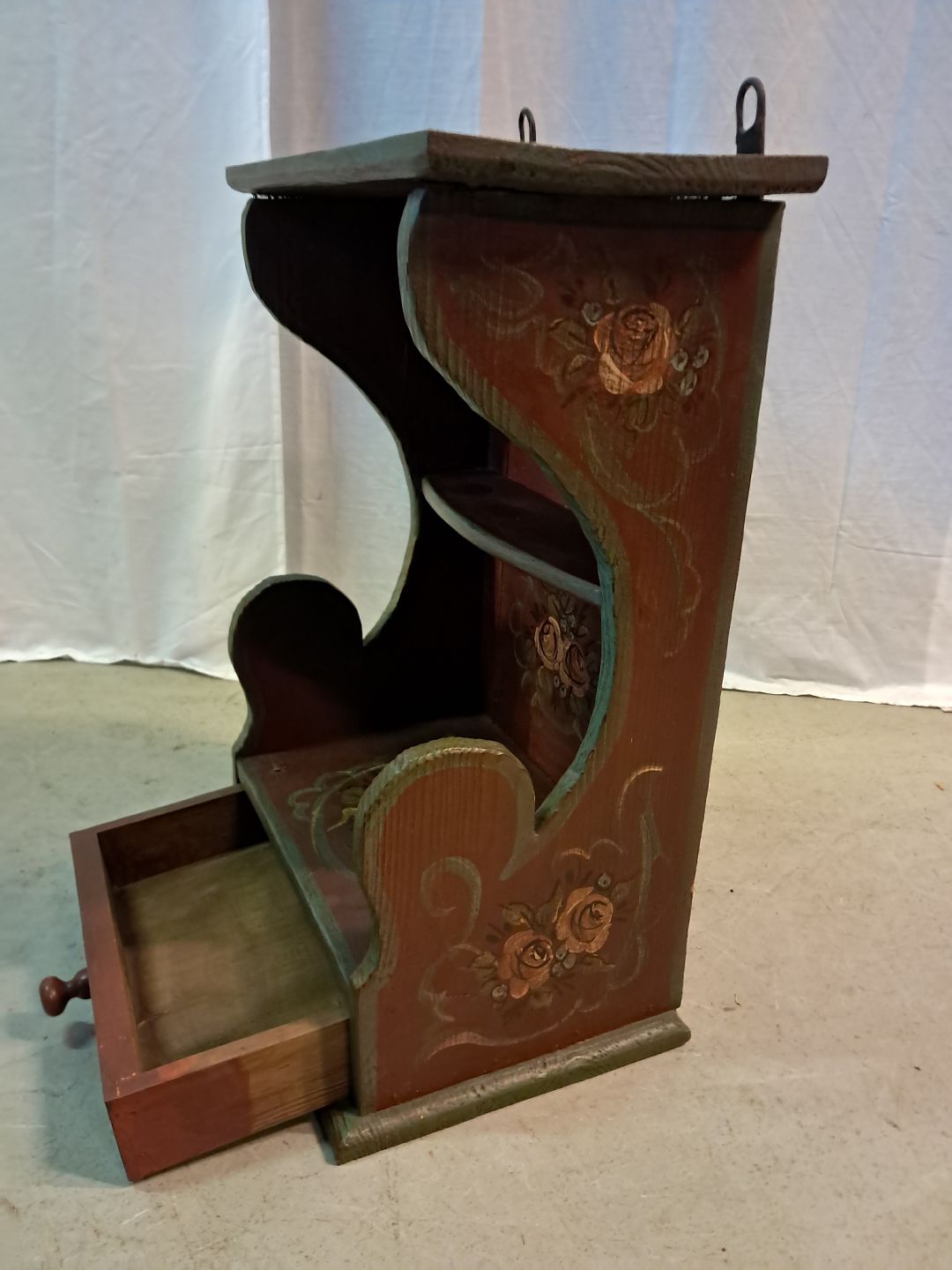 Almuemalet reol fra 19+00erne. Den har brugsspor. Højde 58cm Bredde 37cm Dybde 27cm Emne nummer: 77443