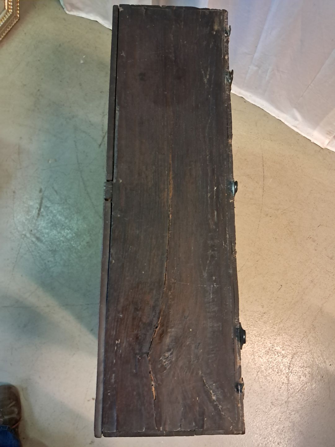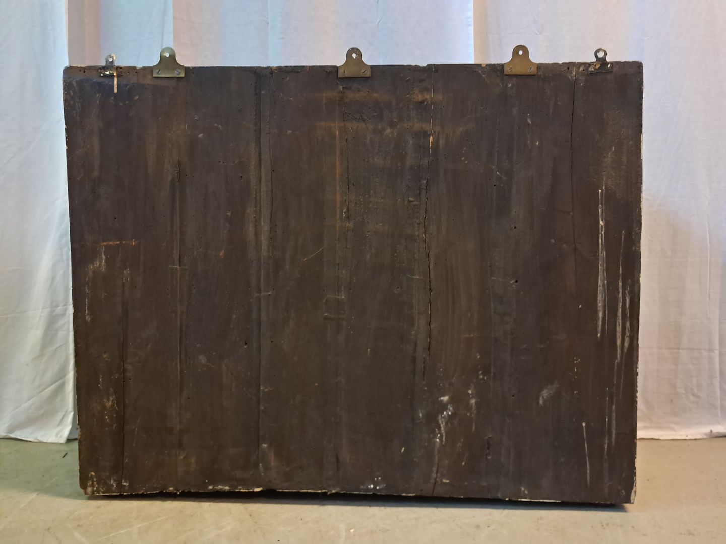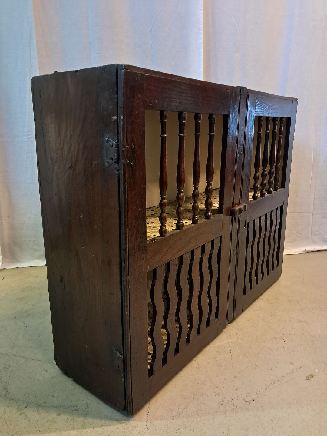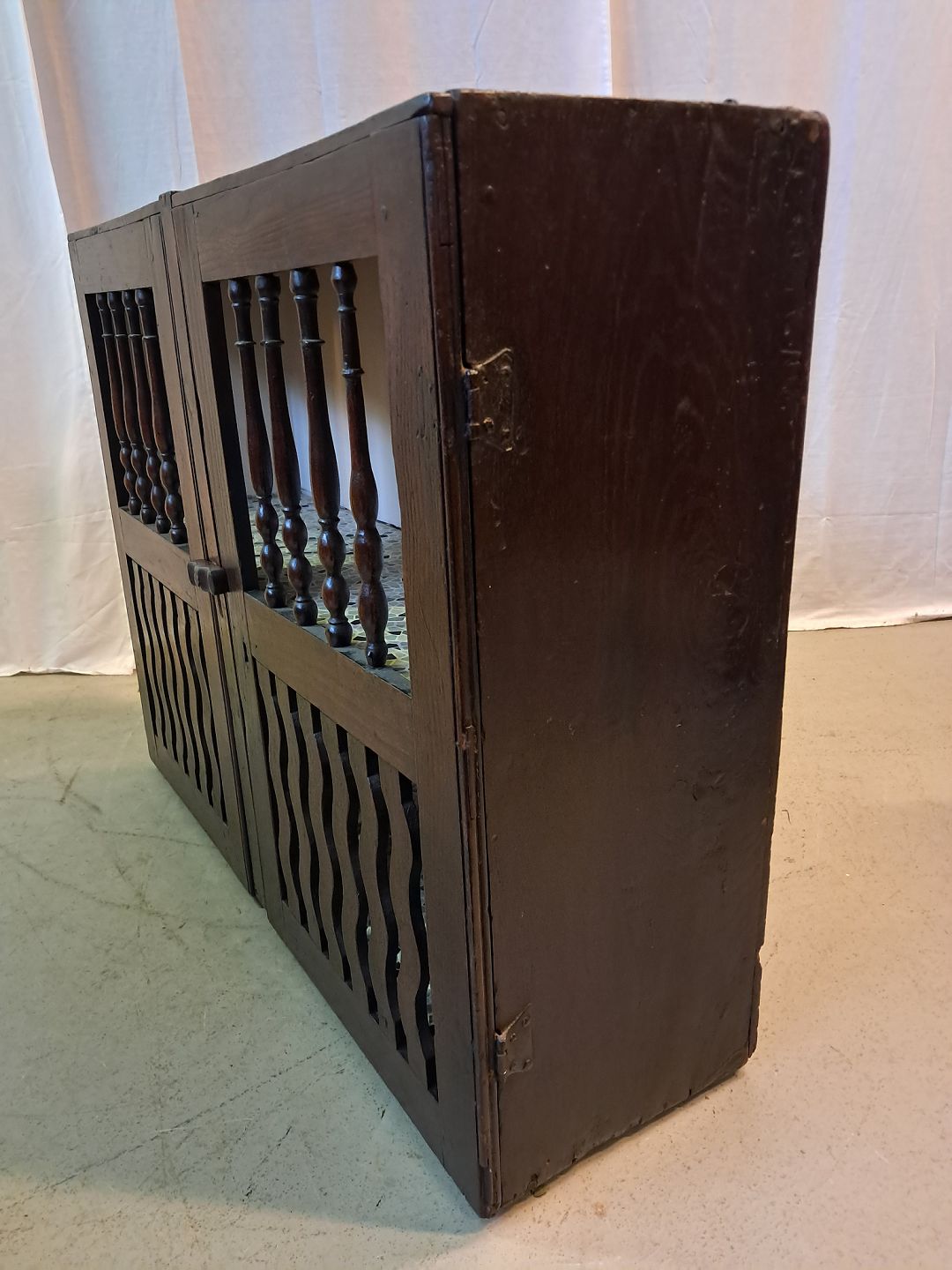 Antikt skab i massivt egetræ, fra 1880erne. Det har brugsspor. Højde 72cm Bredde 92cm Dybde 28cm Emne nummer: 77457