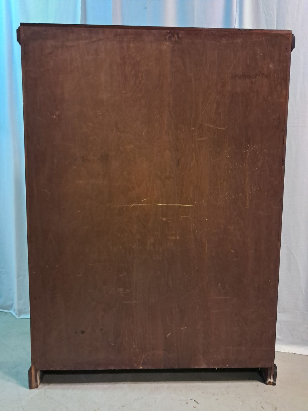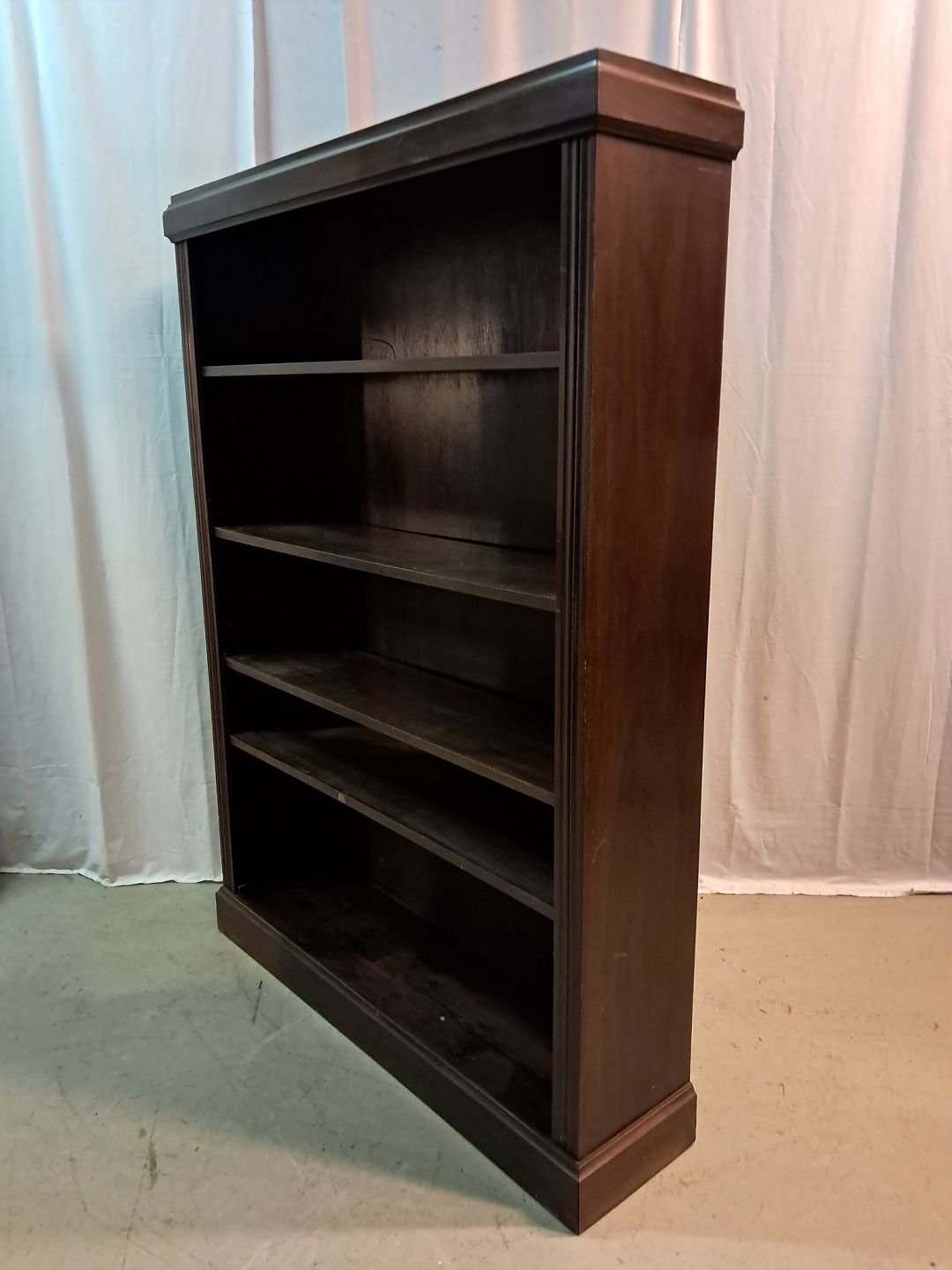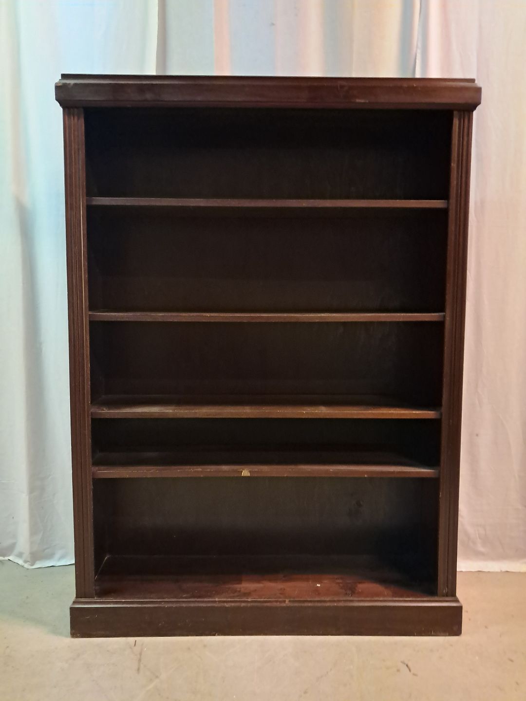 Reol i fineret mahogni, fra 1920erne. Den har brugsspor. Højde 151cm Bredde 109cm Dybde 27cm Emne nummer: 77466
