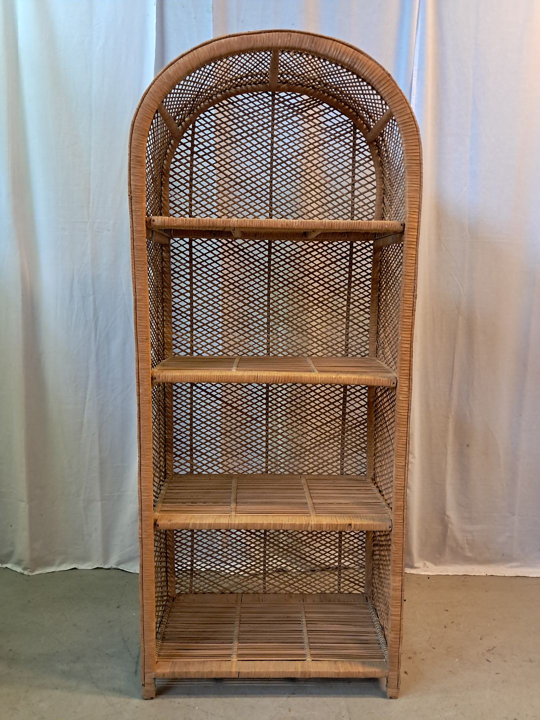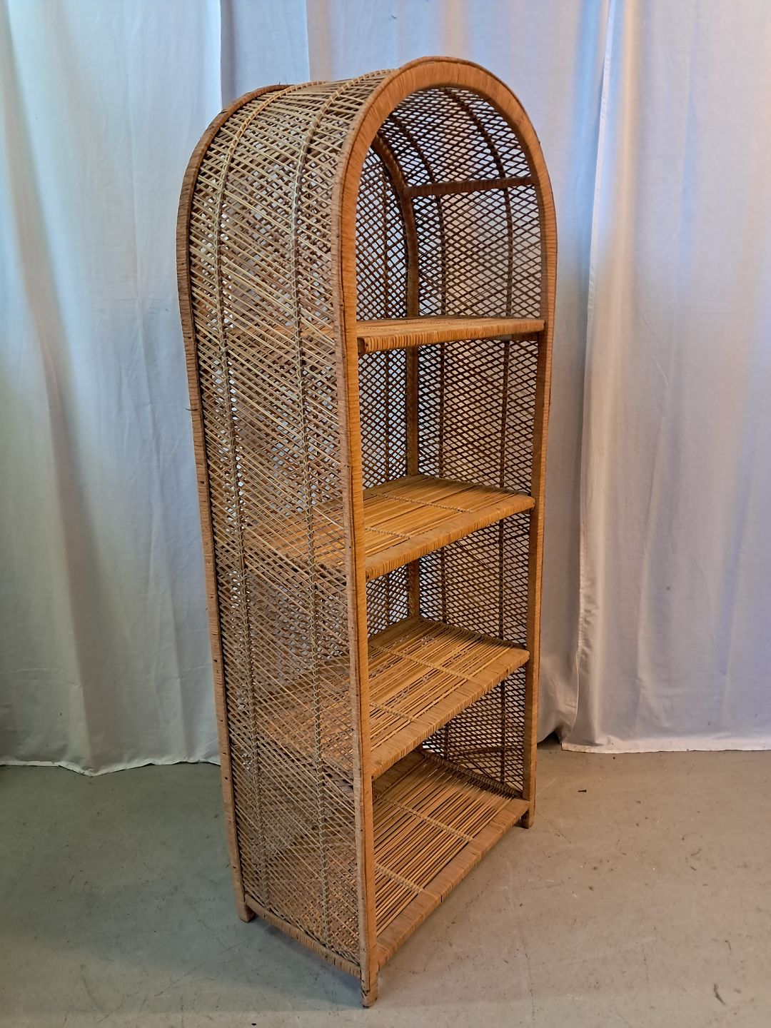 Reol i rørflet, fra 1990erne. Den har brugsspor. Højde 160cm Bredde 65cm Dybde 35cm Emne nummer: 77477