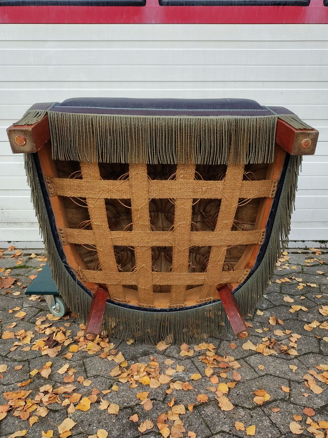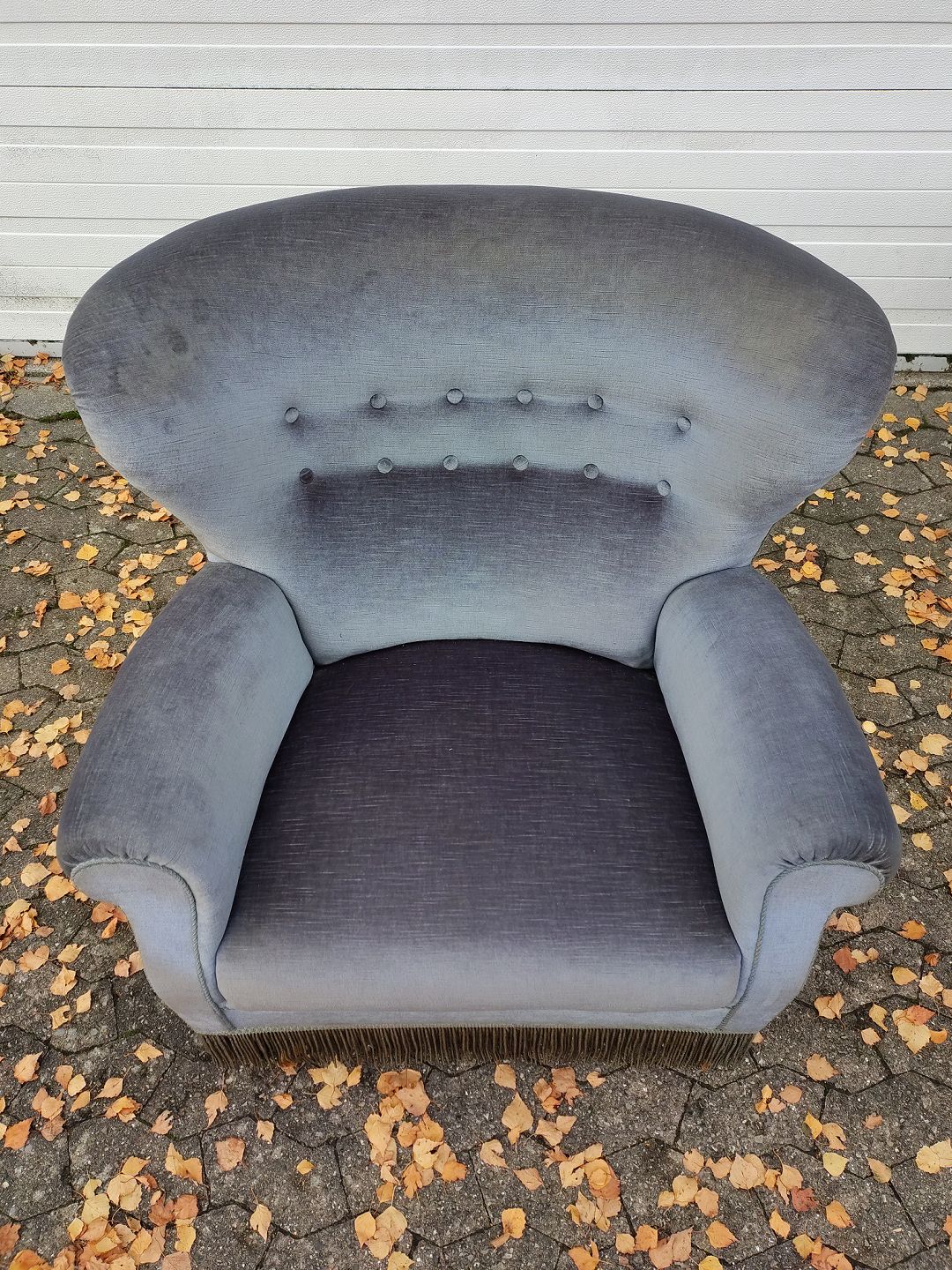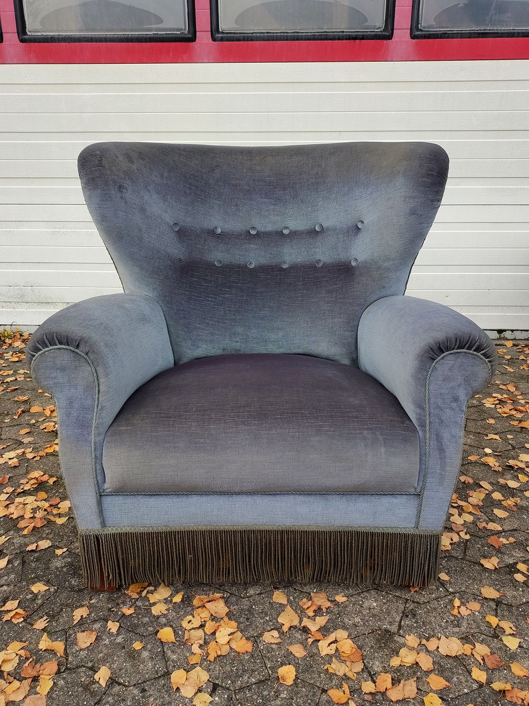 Lænestol med velourbetræk, fra 1930erne. Den har brugsspor. Ryghøjde 90cm Sædehøjde 41cm Emne nummer: 77484