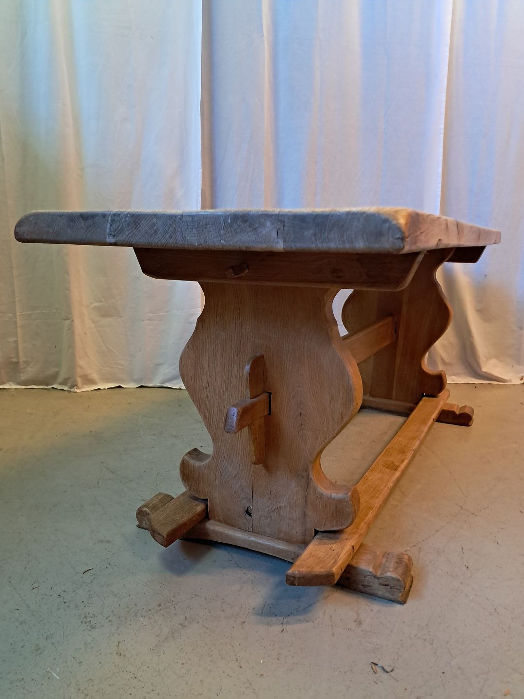 Sofabord i massivt egetræ, fra 1970erne. Det har brugsspor. Højde 59cm Bredde 53cm Længde 145cm Emne nummer: 77519