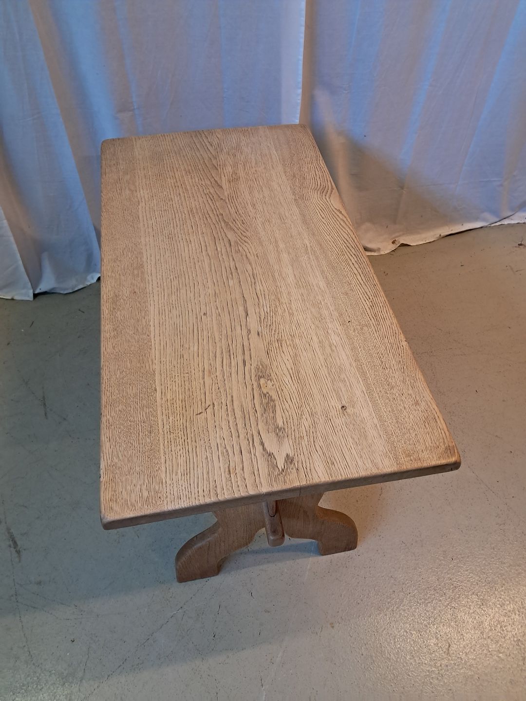 Sofabord i massivt egetræ, fra 1980erne. Det har brugsspor. Højde 56cm Bredde 55cm Længde 105cm Emne nummer: 77520