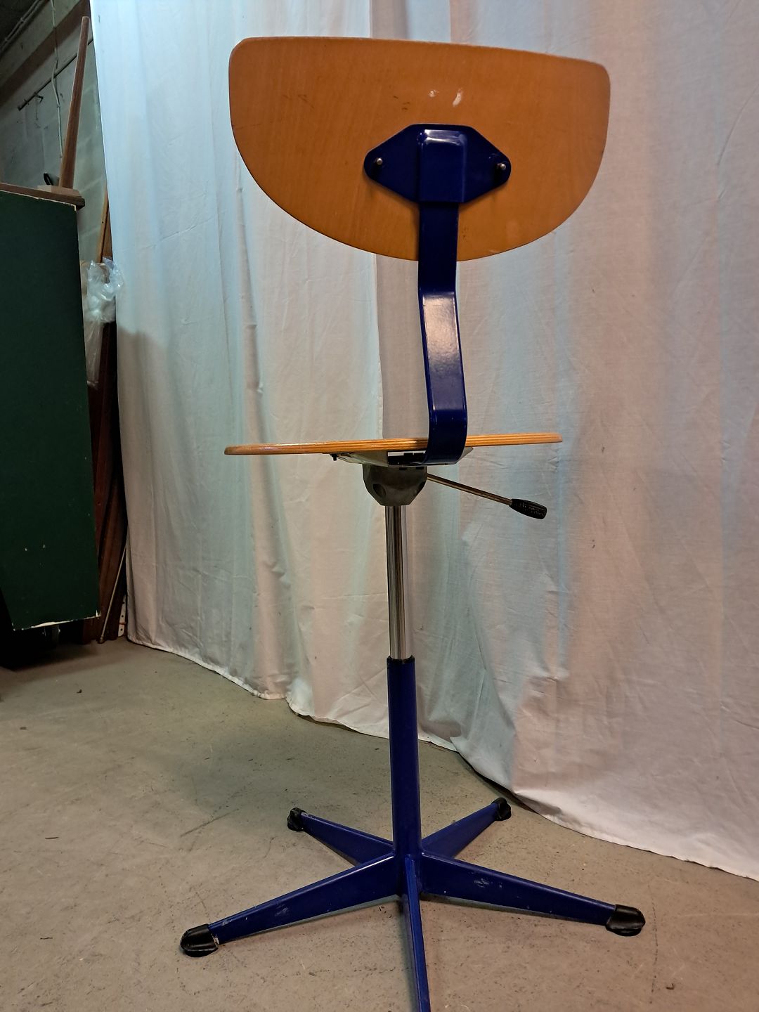 Stol i maletmetal, fra 1990erne. Den har brugsspor. Sædehøjde 62cm Diameter på sæde 43cm Emne nummer: 77548