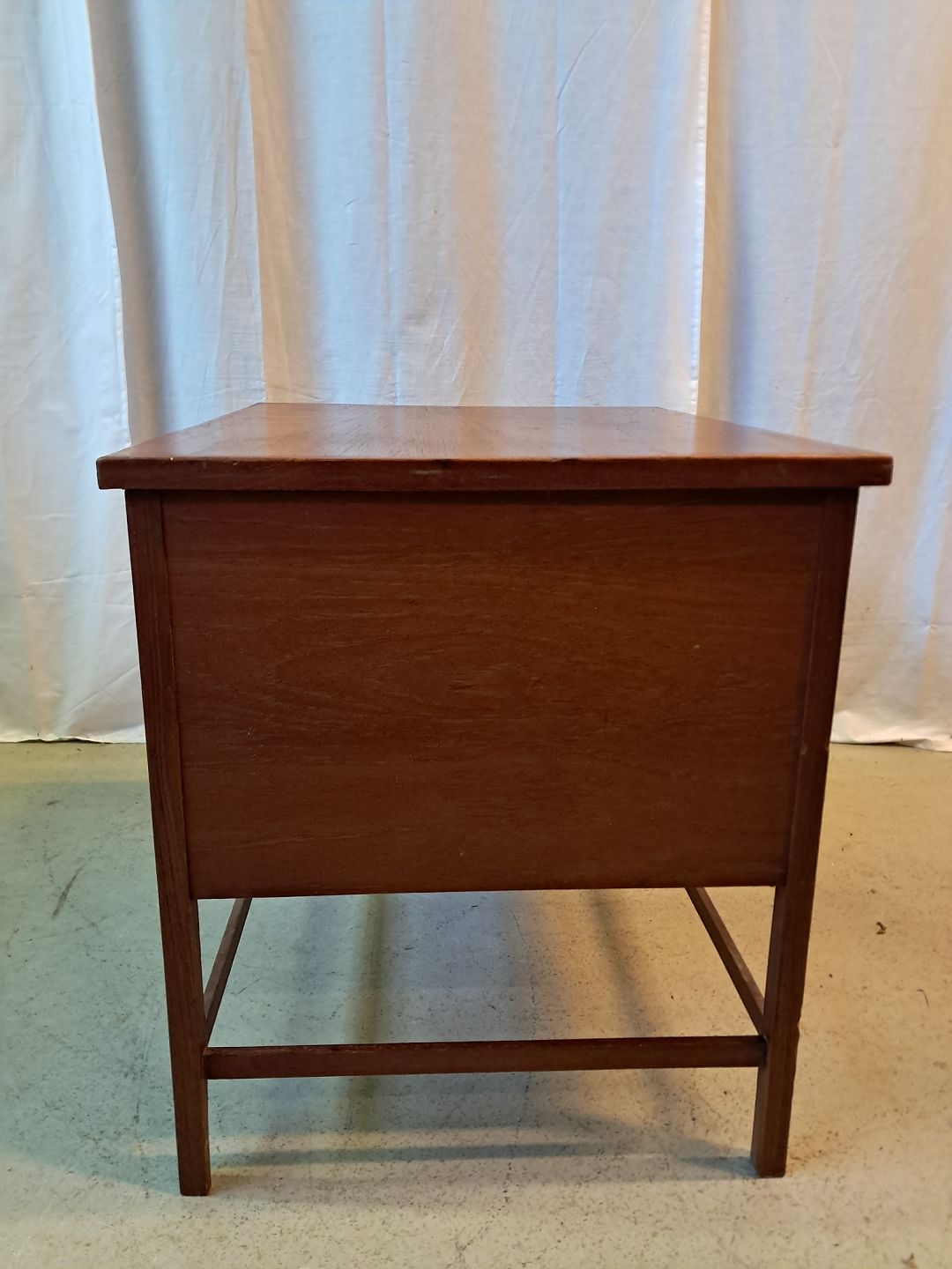 Kassemøbel i fineret teaktræ, fra 1960erne. Det har brugsspor og en defekt på det ene ben. Højde 57cm Bredde 51cm Længde 64cm Emne nummer: 77616