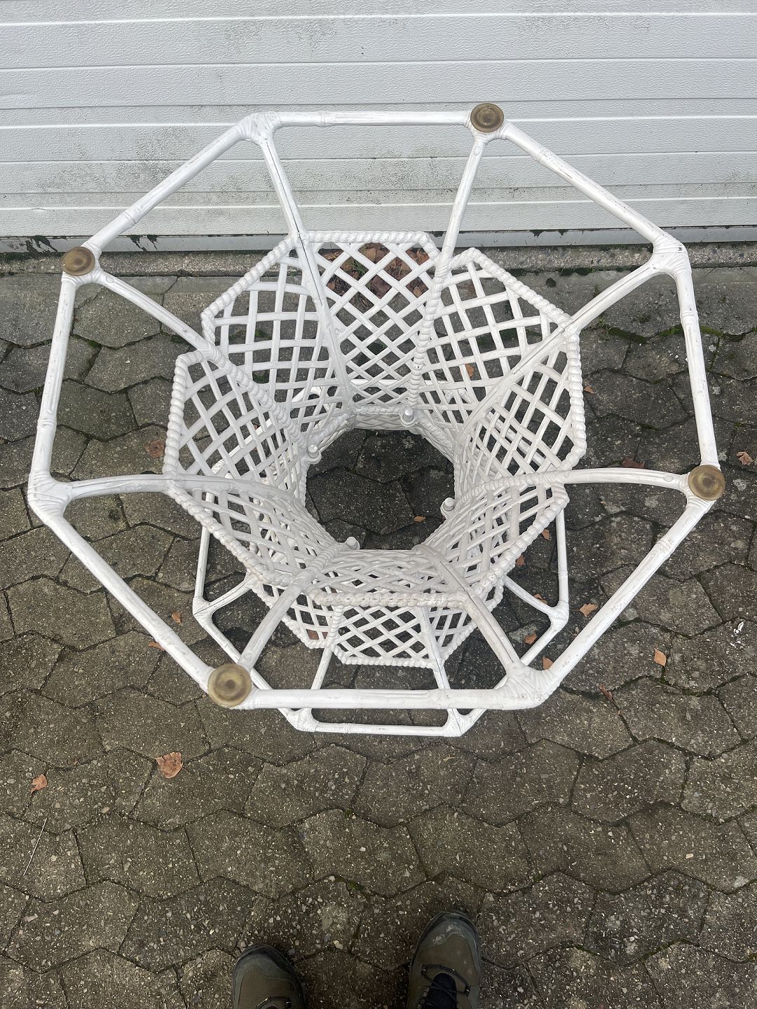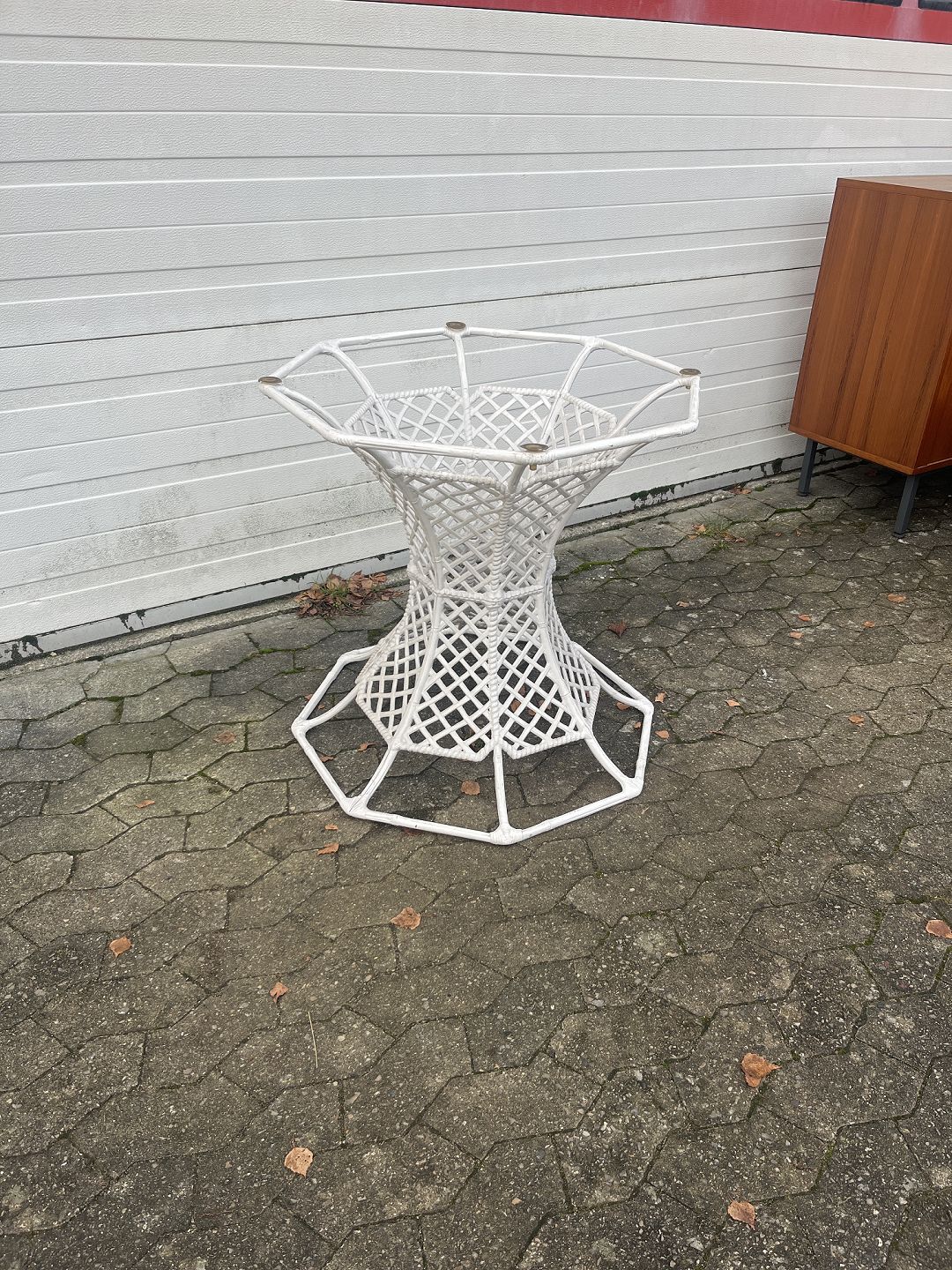 Malet understel i metal, fra 1980erne. Det har brugsspor. Højde 72cm Diameter 71cm Emne nummer: 77621