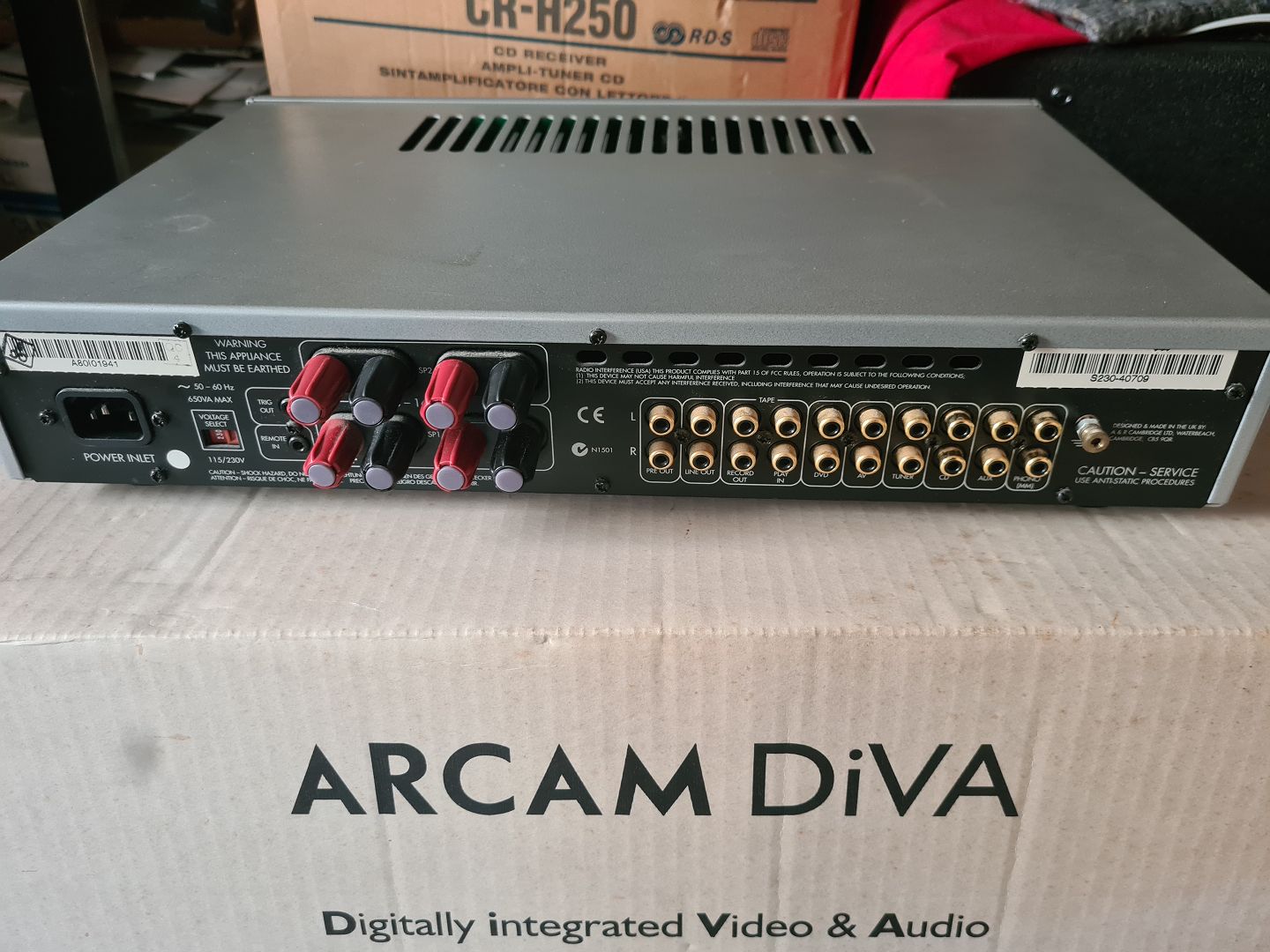 Integreret forstærker Arcam DiVA model A80. Testet og virker fint. Kommer med og i original emballage samt med strømførende kabel og fjernbetjening CR-389. Højde 8 cm. Bredde 44 cm. Dybde 30 cm. Emne nummer: 60688