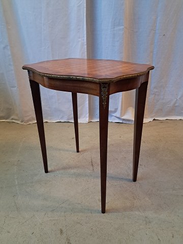 Bord i metal med massivt træplade, fra 1960erne. Det har brugsspor. Højde 44cm Bredde 34cm Længde 51cm Emne nummer: 77651