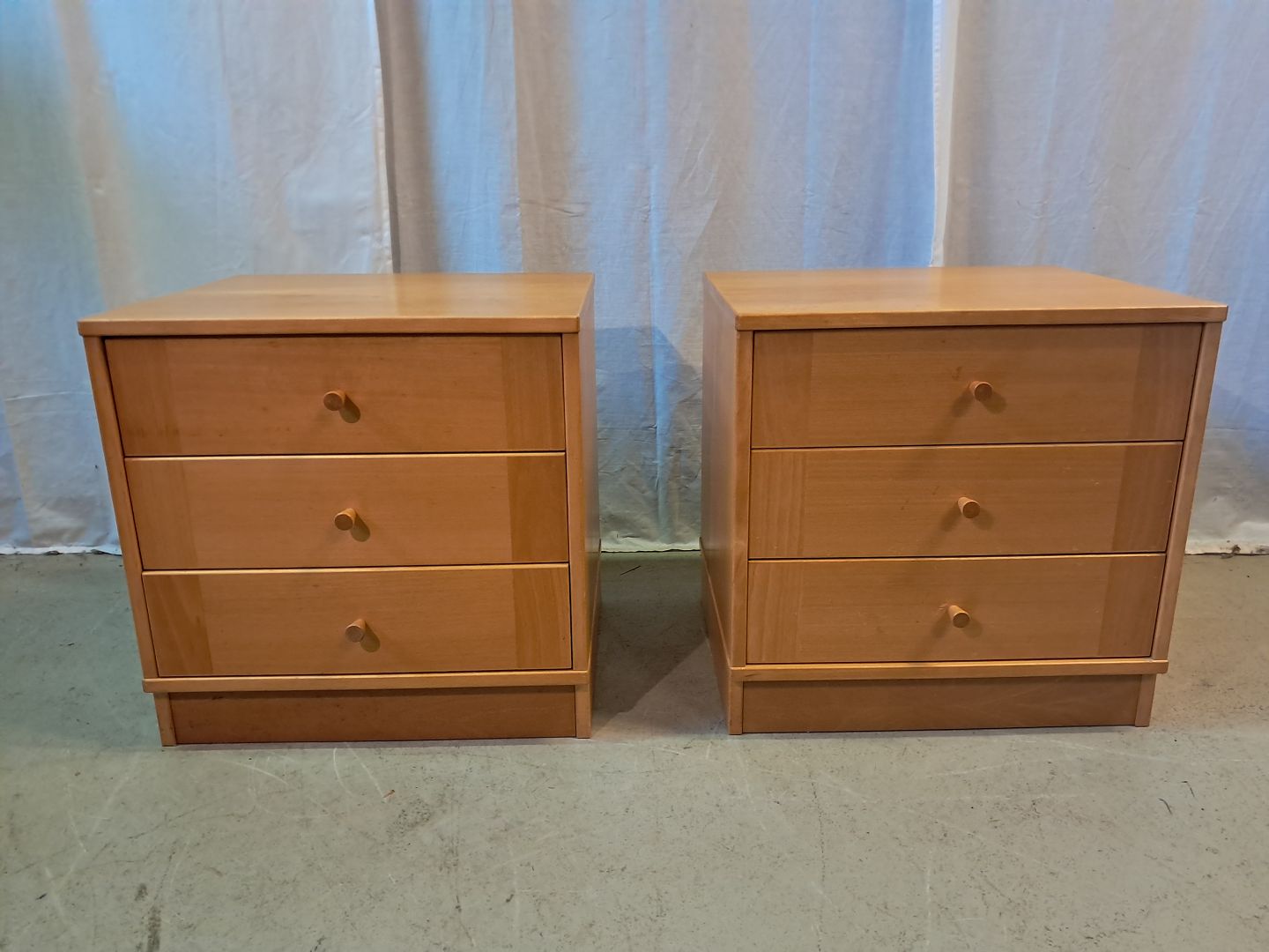 2 Natskabe i fineret bøgetræ, fra 2000erne. De har brugsspor. Højde 50cm Bredde 50cm Dybde 42cm Emne nummer: 77682