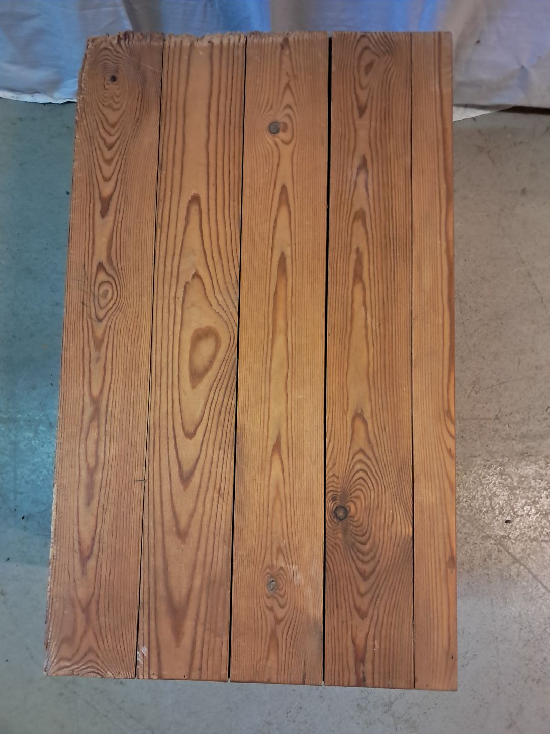 Kiste i massivt fyrretræ, fra 1910erne. Den har brugsspor og skal limes, der med følger ikke nøgle. Højde 39cm Bredde 71cm Dybde 42cm Emne nummer: 77691