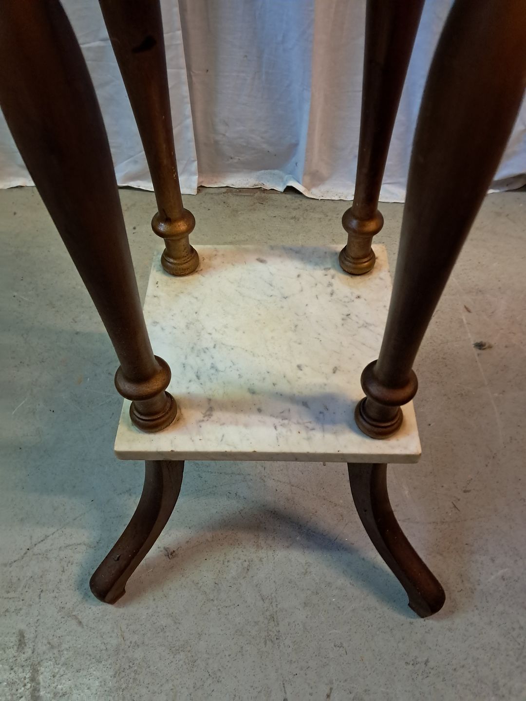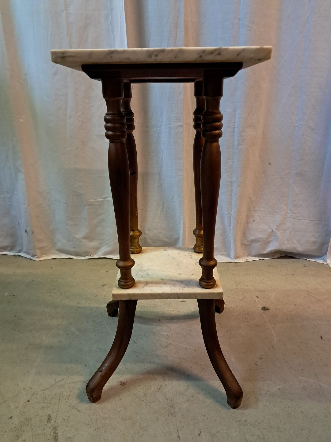 Guldmalet piedestal med marmorplader, fra 1920erne. Den har brugsspor. Højde 76cm Bredde 37cm Dybde 37cm Emne nummer: 77698