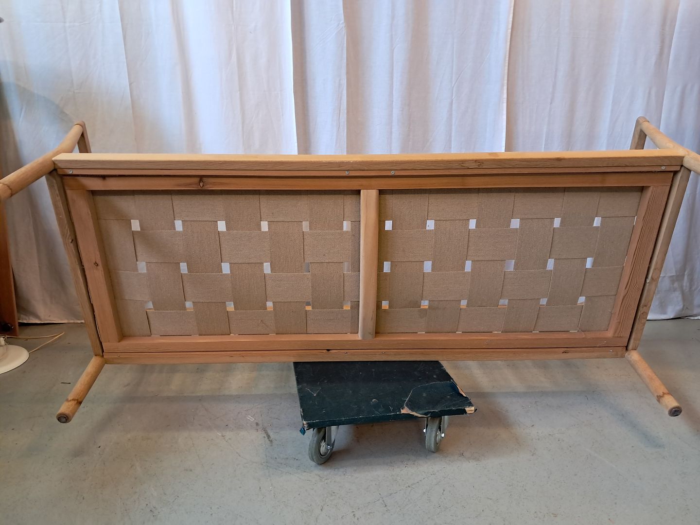 Sofa i massivt egetræ med hynder af kunst-rugskind, fra 2000erne. Den har brugsspor. Ryghøjde 76cm Sædehøjde 45cm Bredde 190cm Dybde 76cm Emne nummer: 77723