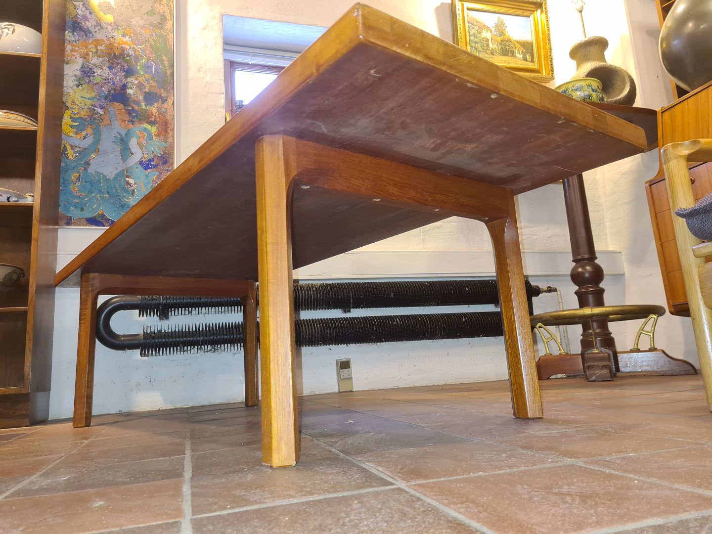A. Mikael Lausen sofabord udført i massiv teak. Fremstilet ca. 1960'erne. Fremstår i pæn brugt stand. Mål: H. 48 cm. L. 165 cm. B. 62 cm. Emne nummer: 80929