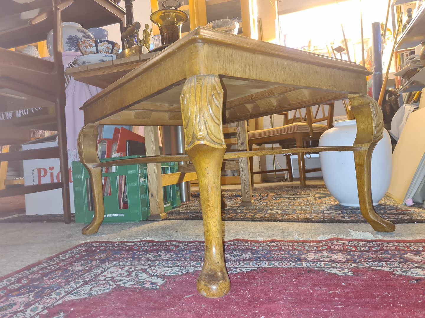 Dansk møbelproducent sofabord i eg m. kakler. Udført ca. 1930'erne. Fremstår i pæn brugt stand. Mål: H. 49 cm. L. 76 cm. B. 61 cm. Emne nummer: 81026