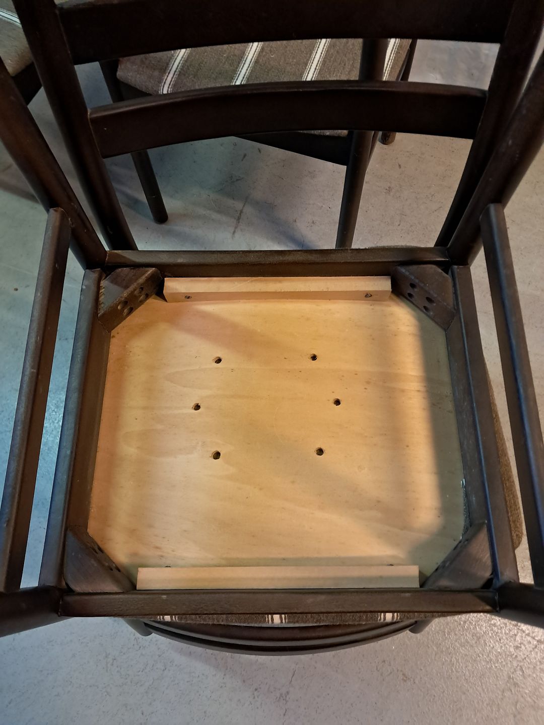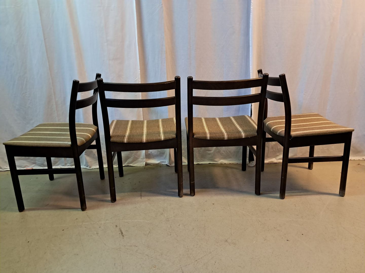 4 Stole i bejdset massivt bøgetræ, fra 1980erne. De har brugsspor. Ryghøjde 79cm Sædehøjde 43cm Emne nummer: 77759