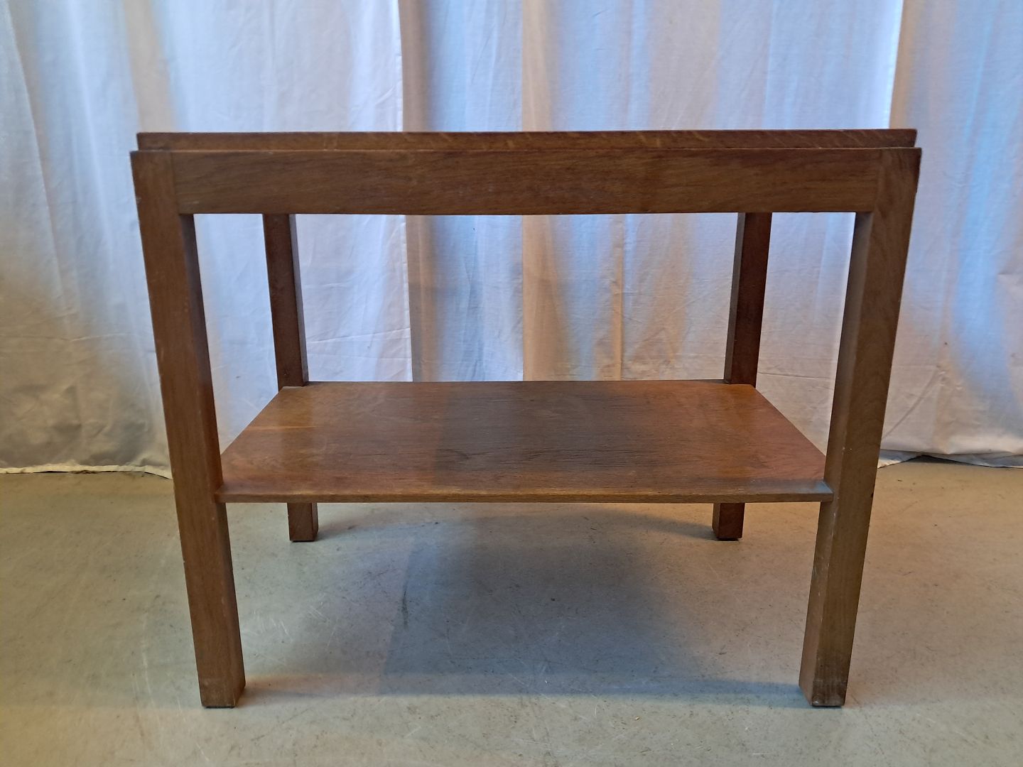 Bord i fineret egetræ, fra 1950erne. Det har en del brugsspor. Højde 65cm Bredde 45cm Dybde 75cm Emne nummer: 77805