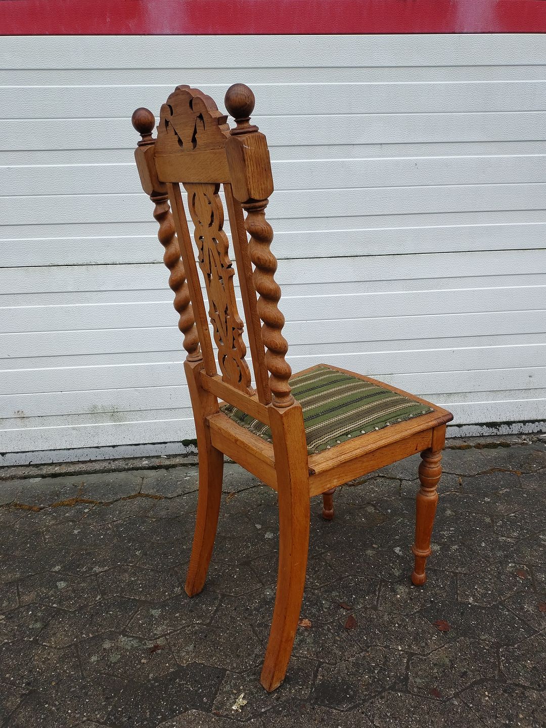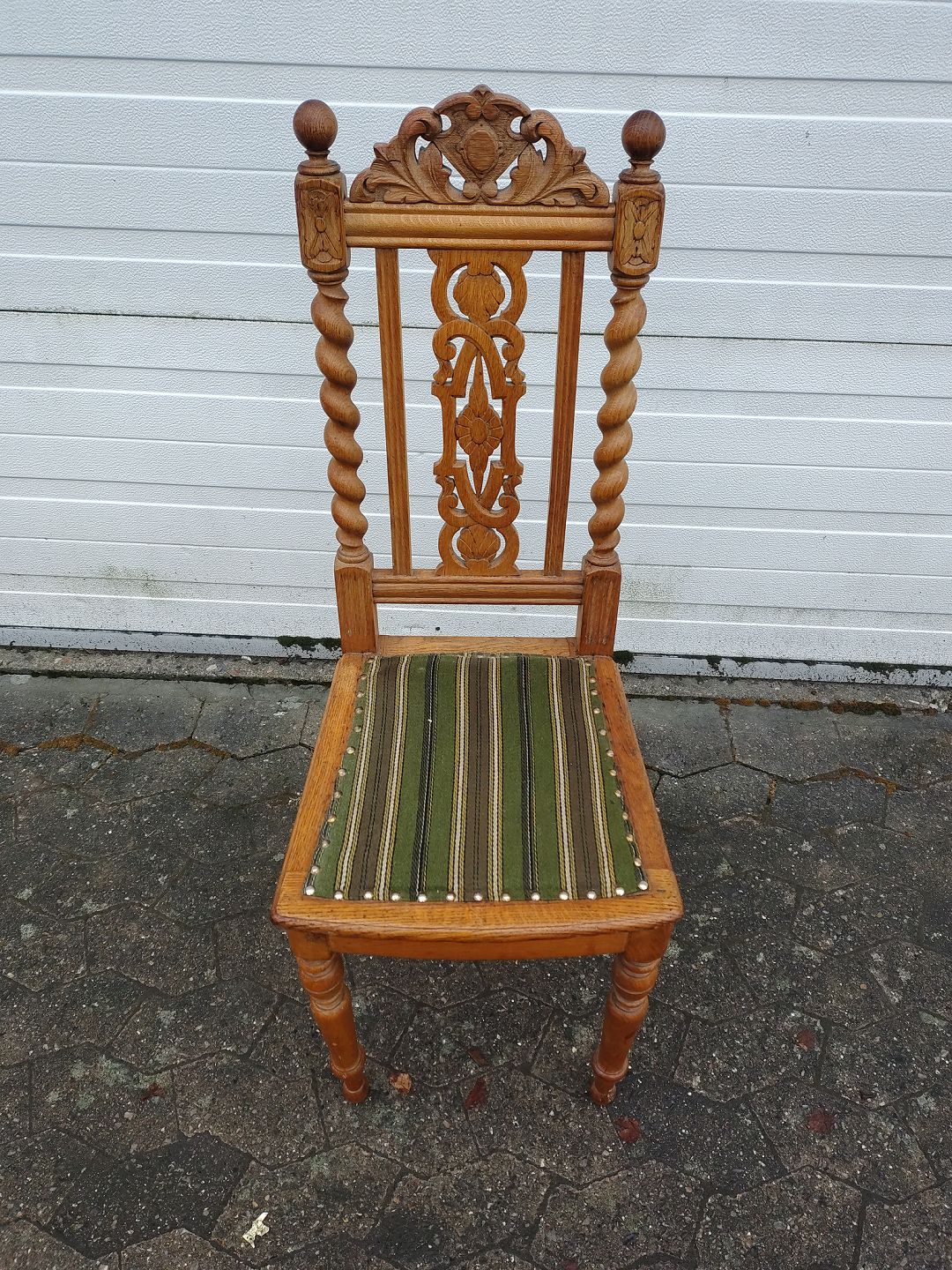 Stol i massivt egetræ, fra 1920erne. Den har brugsspor. Ryghøjde 108cm Sædehøjde 47cm Emne nummer: 77843