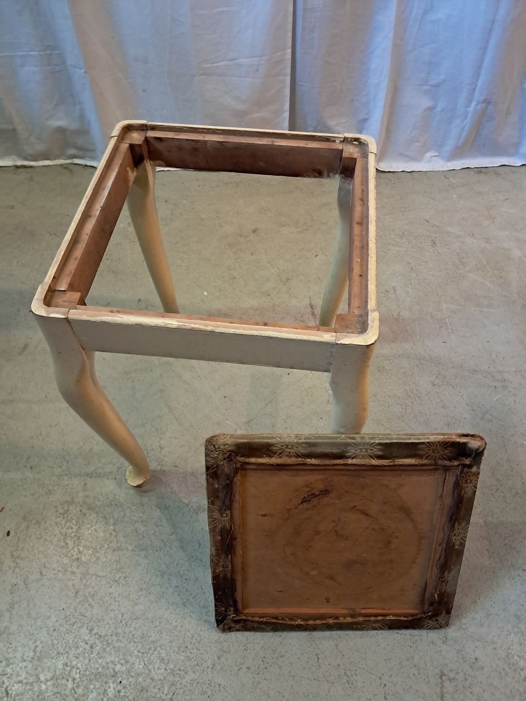 Malet skammel fra 1920erne. Den har brugsspor og defekt betræk. Højde 46cm Bredde 35cm Dybde 35cm Emne nummer: 77851