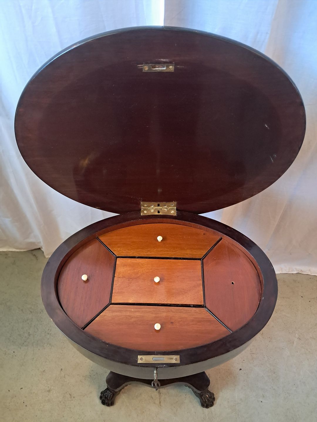 Søjlebord i fineret mahogni, fra 1910erne. Det har brugsspor. Højde 73cm Bredde 57cm Dybde 43cm Emne nummer: 77875