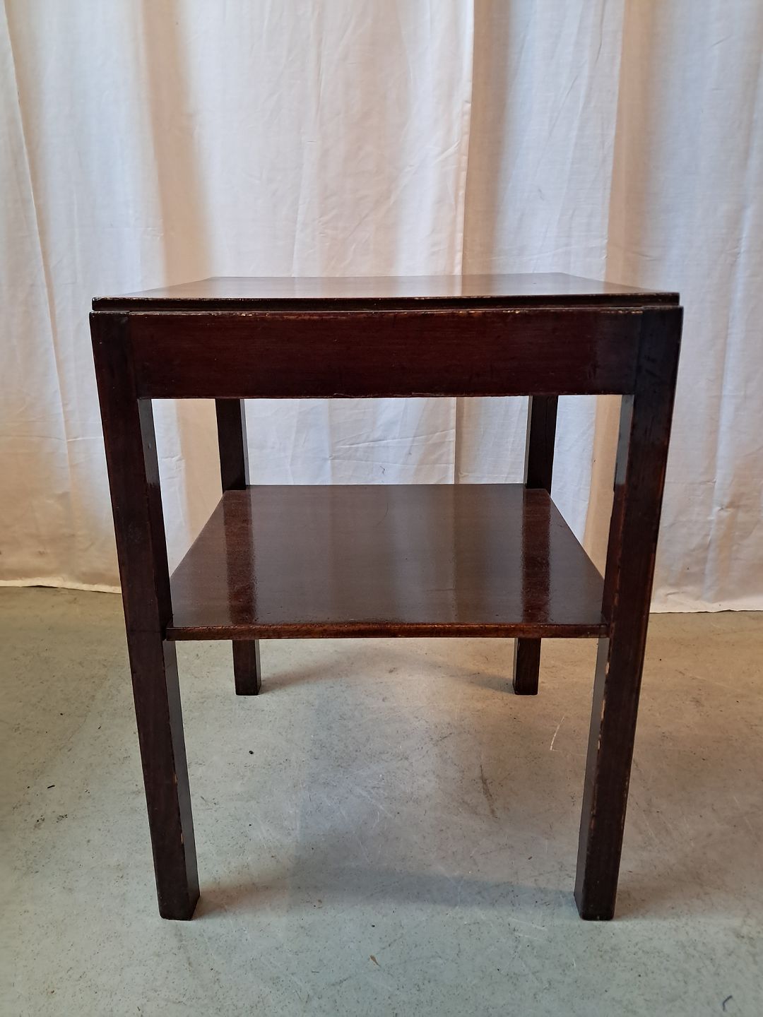 Lampebord i lakeret og bejdset fyrretræ, fra 1950erne. Det har brugsspor. Højde 55cm Bredde 42cm Længde 42cm Emne nummer: 77887