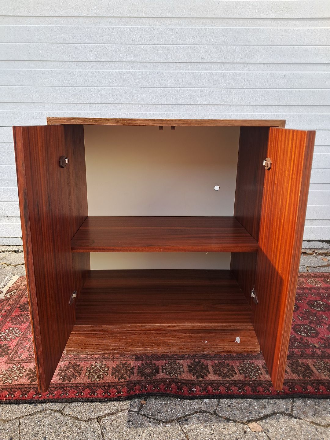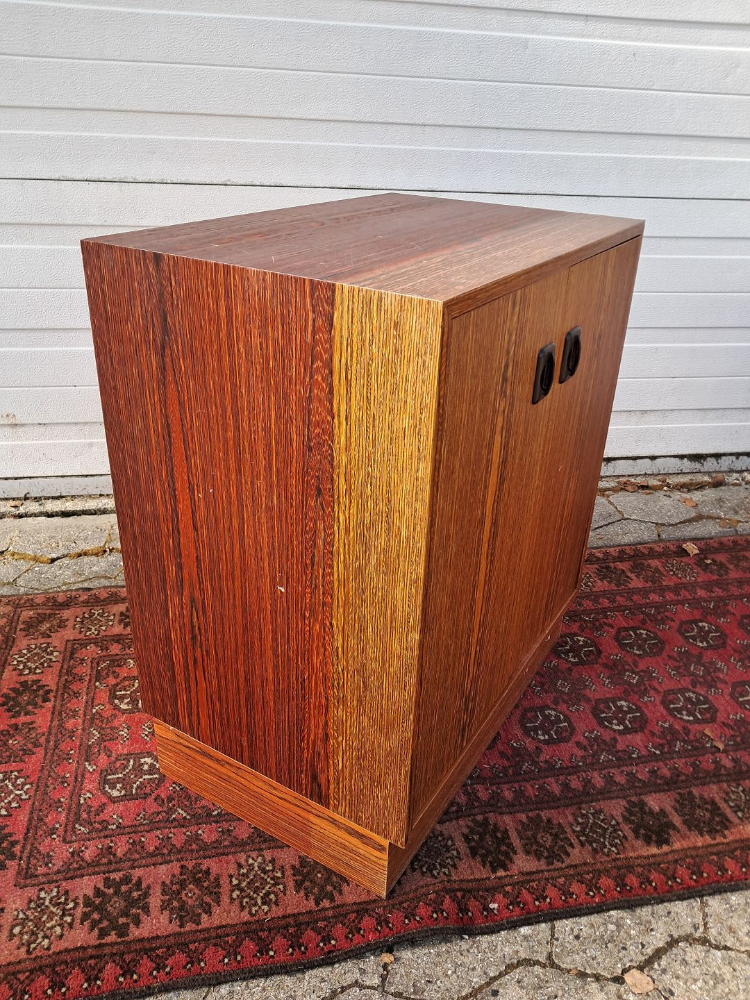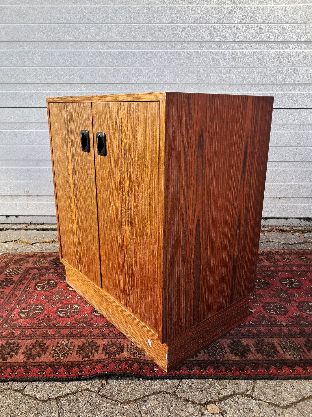 Skab i fineret palisander, fra 1970erne. Det har brugsspor. Højde 71cm Bredde 60cm Dybde 40cm Emne nummer: 77895