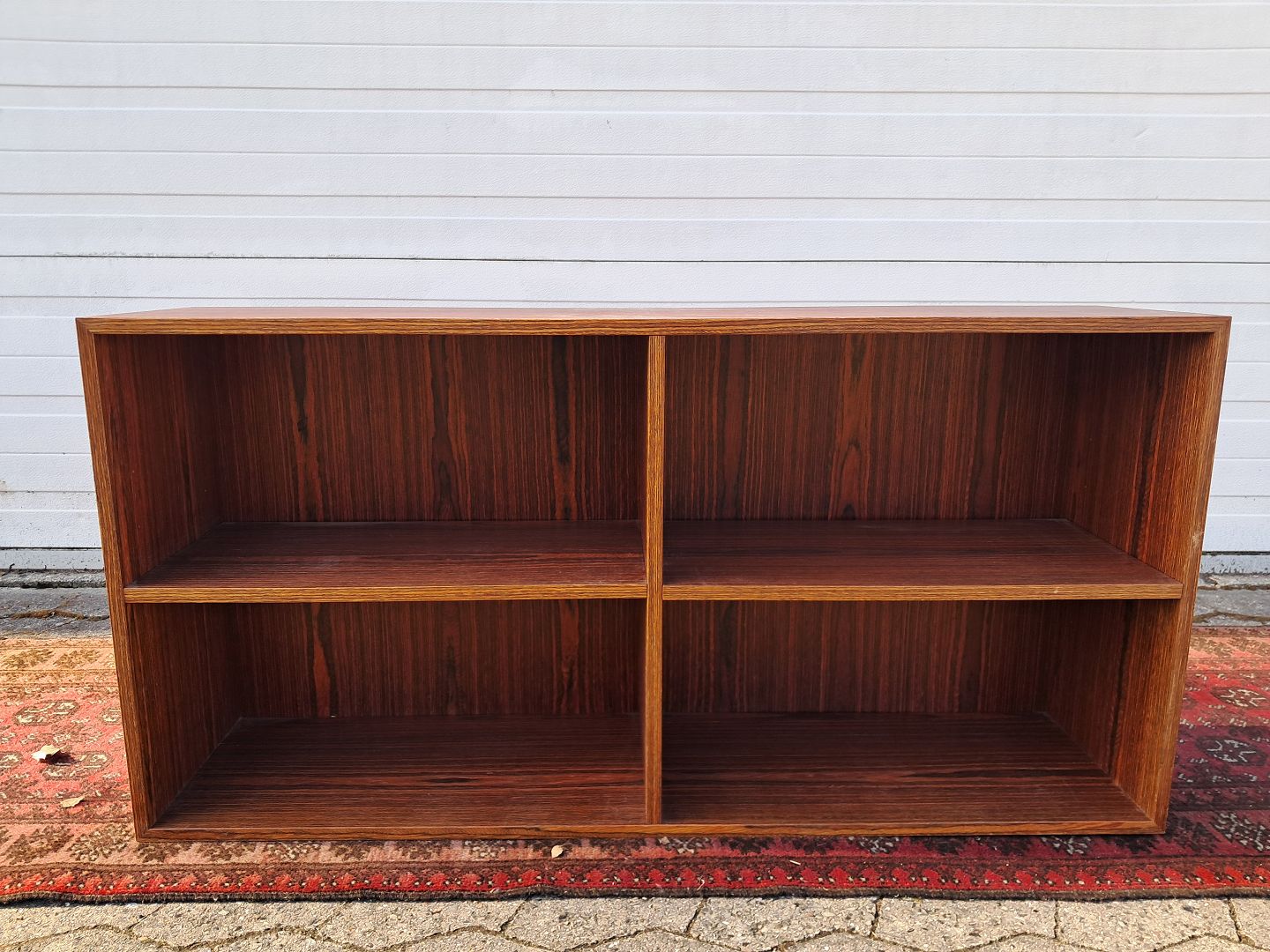 Reol i fineret palisander, fra 1970erne. Den har brugsspor. Højde 60cm Bredde 120cm Dybde 30cm Emne nummer: 77897