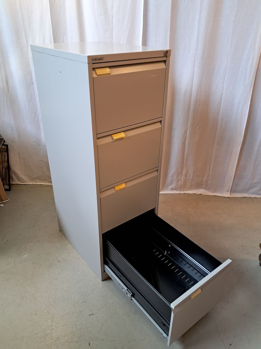 Malet metal kommode/arkivskab, fra 1990erne. Det har brugsspor og der medfølger ikke nøgle. Højde 132cm Bredde 47cm Dybde 62cm Emne nummer: 77914