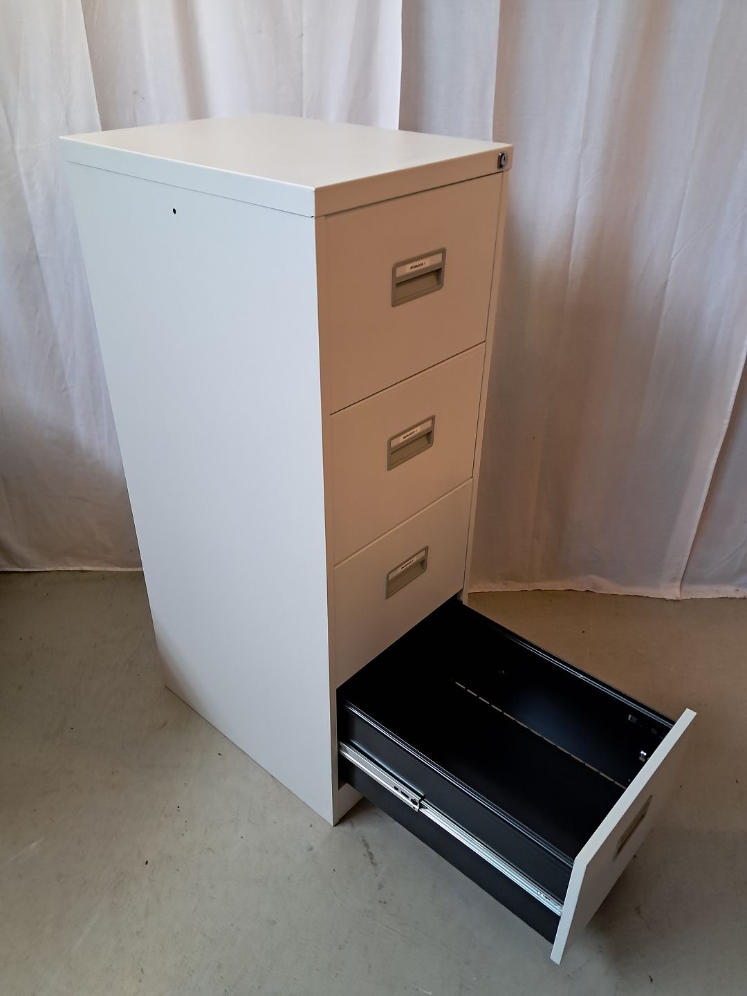 Malet metal kommode/arkivskab, fra 1990erne. Det har brugsspor og der medfølger ikke nøgle. Højde 132cm Bredde 47cm Dybde 62cm Emne nummer: 77916