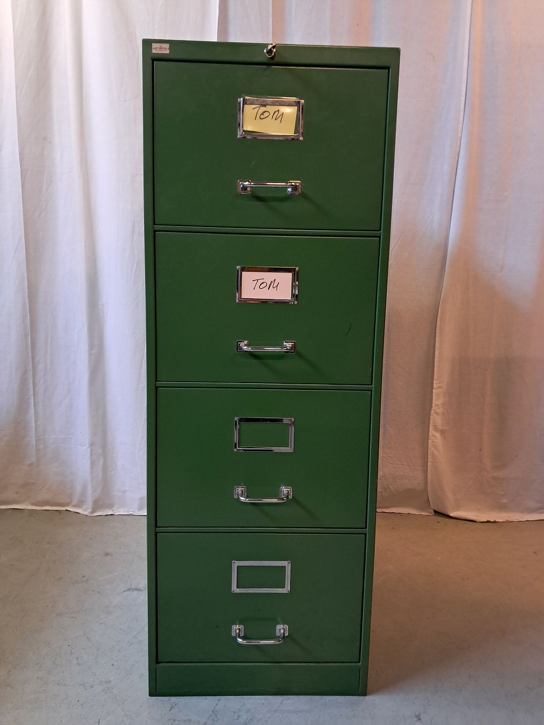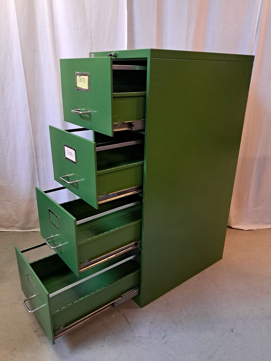Malet metal arkivskab, fra 1970erne. Det har brugsspor. Højde 132cm Bredde 47cm Dybde 74cm Emne nummer: 77959