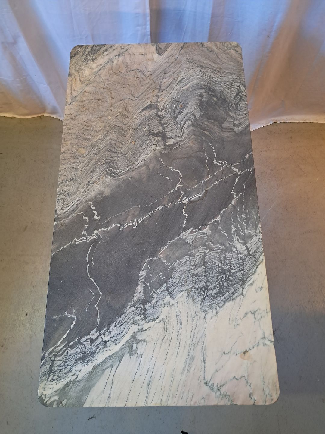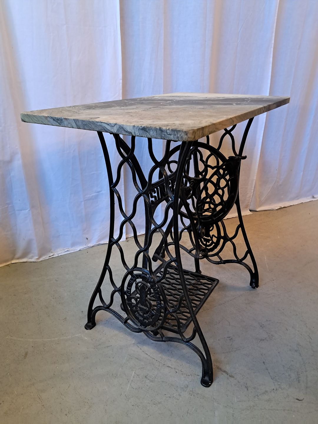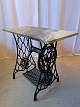 Symaskinestel fra Singer m. Marmorplade på. Højde: 73 cm. Bredde: 45 cm. Dybde: 85 cm. Emne nummer: 77964