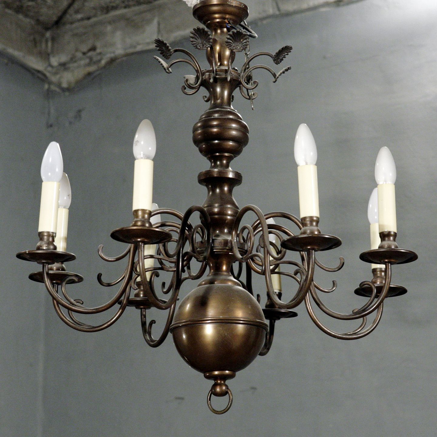 8-armet kirkekrone i bruneret messing, 70 cm i diameter, ca. 1930