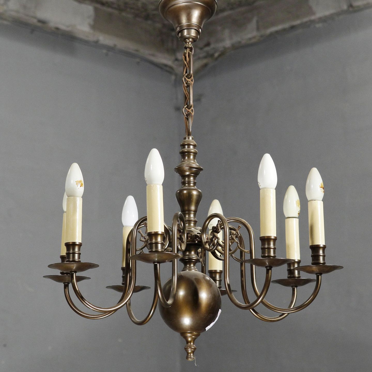8-armet kirkekrone i bruneret messing, 60 cm i diameter, 1930-1940