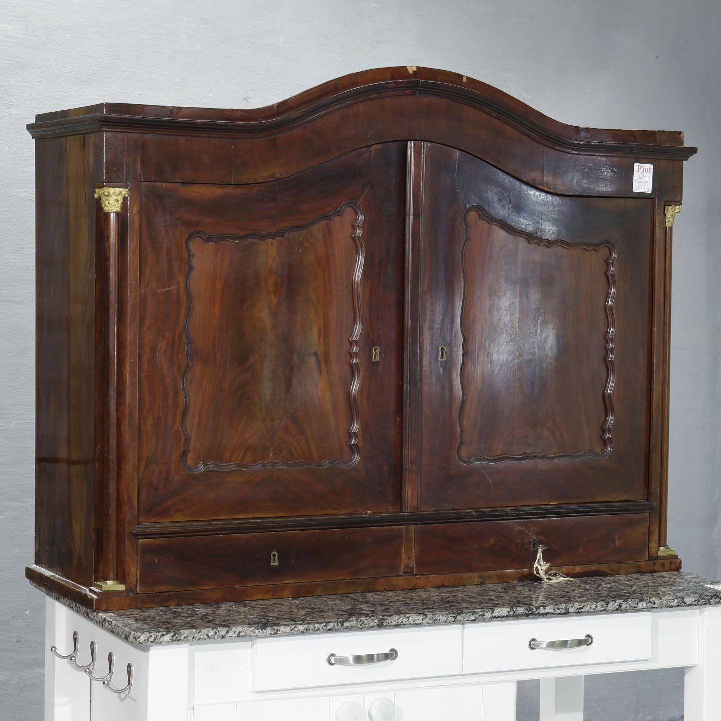 Vægskab i mahogni m. 2 låger og 2 skuffer,